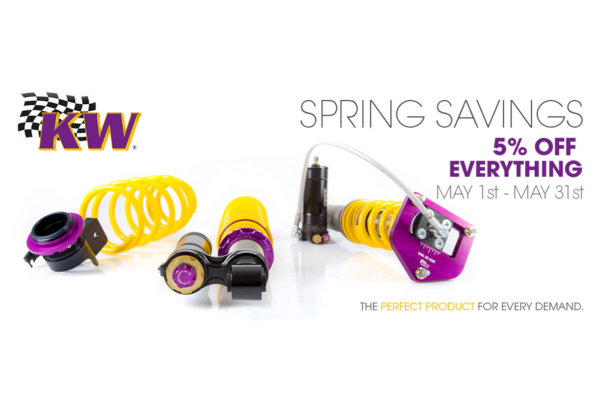 With the month of May coming to a close, the rare opportunity for 5% off all of KW Suspension inventory is quickly approaching its end. Take advantage of this discount on any coilover set, electronic damping systems, or lowering springs before it’s over!