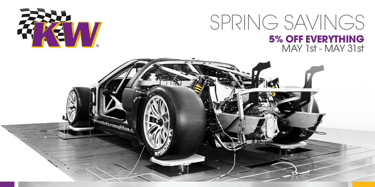 With the month of May coming to a close, the rare opportunity for 5% off all of KW Suspension inventory is quickly approaching its end. Take advantage of this discount on any coilover set, electronic damping systems, or lowering springs before it’s over!