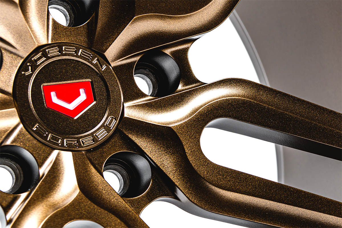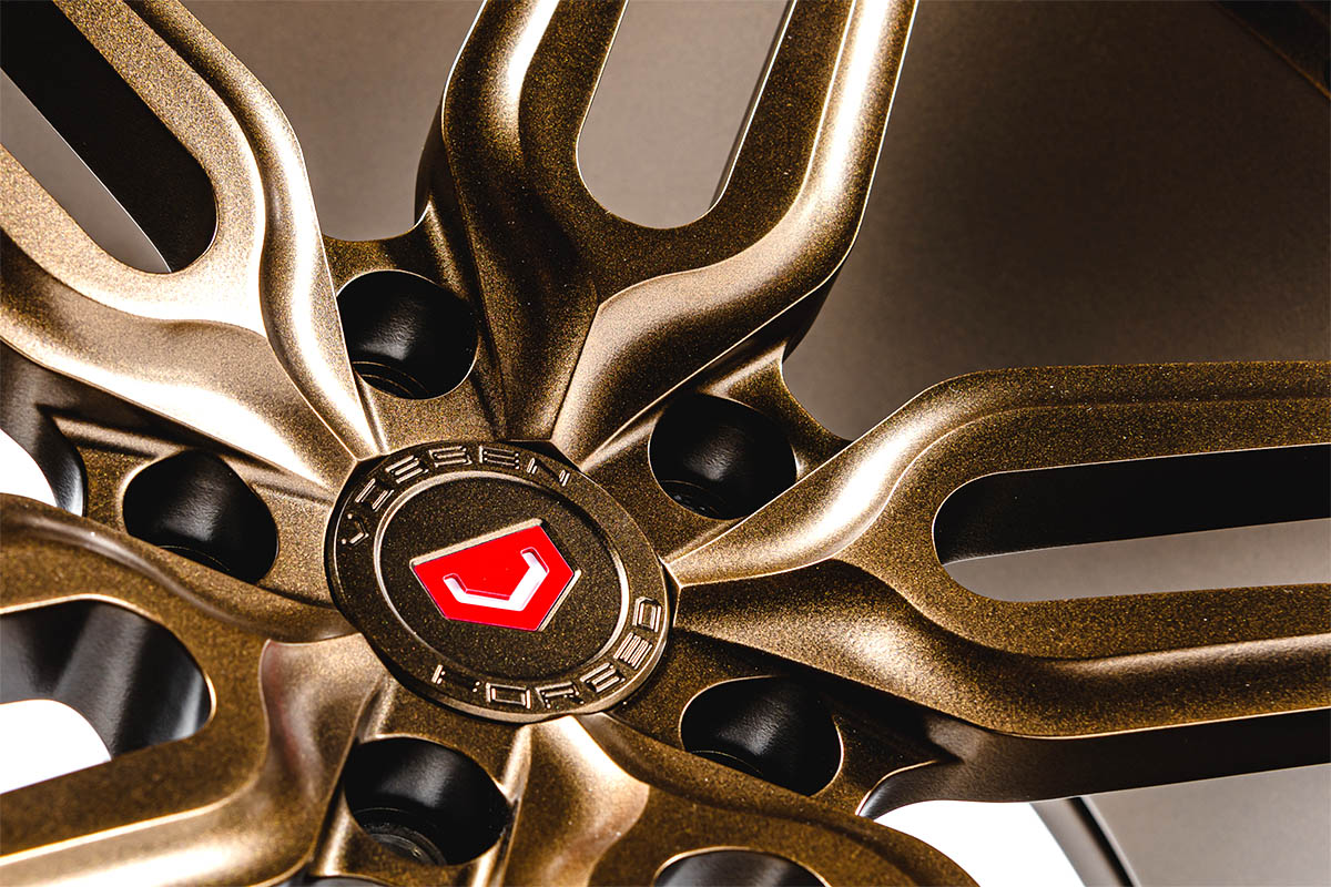 Upgrade the overall appearance and styling of your Lexus RC-F with the Vossen HC-1 20-inch wheels. Featuring a brilliant satin bronze finish, the Vossen HC-1 compliments the large wheels aches of the RC-F. The split-spoke design offers a sleek characteristic with performance styling. Being that the HC-1 is from Vossen’s forged line, the wheels are lightweight and ultra-durable.
