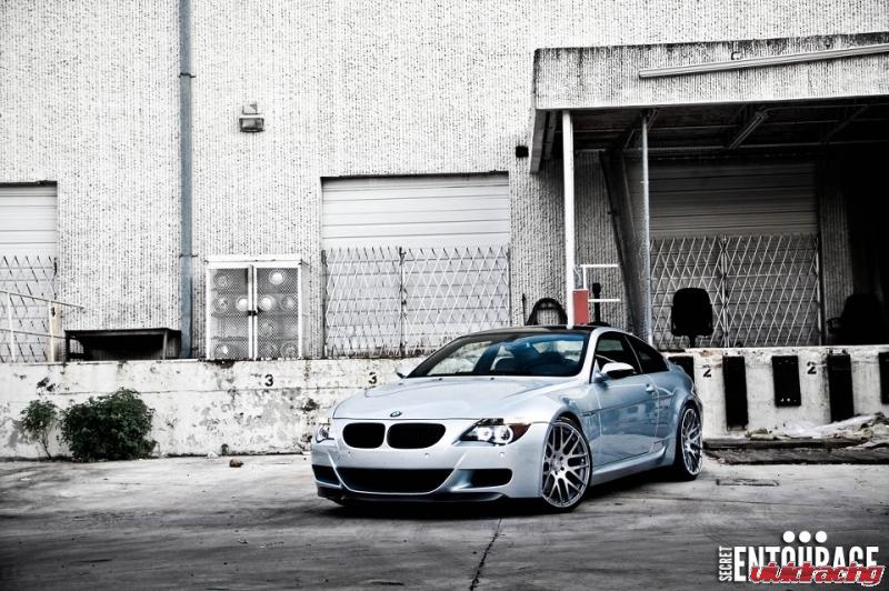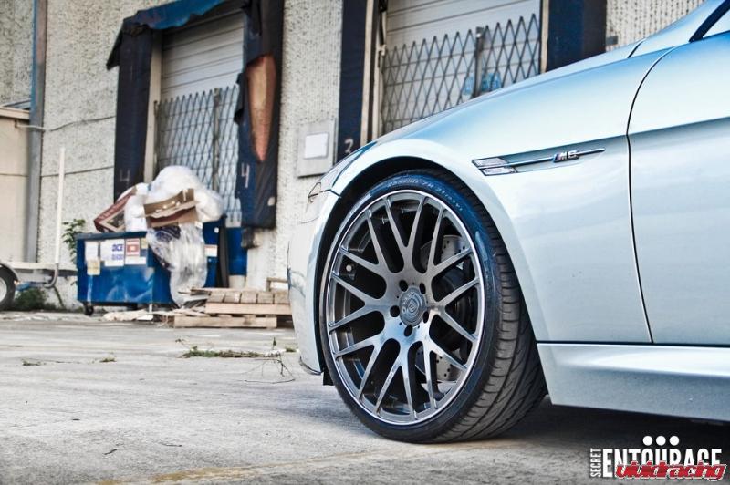 The guys behind the famed book, “Stay Poor, the Idea of Making Money”, Secret Entourage have a secret little project car going on. If your into hot girls and crazy cars, you might want to check out their facebook fan page too below. This BMW M6 dubbed the “Silver Bullet” has been equipped nicely. On the exterior, it is sporting some of the elegant carbon fiber styling by Vorsteiner. The front 1 piece carbon fiber lip gives the front end of the BMW M6 more style. The D2Forged 1 piece monoblock wheels are from their MB1 series in a 20 inch staggard setup. The gunmetal color nicely offsets the silver M6 paint. Enjoy the pics!