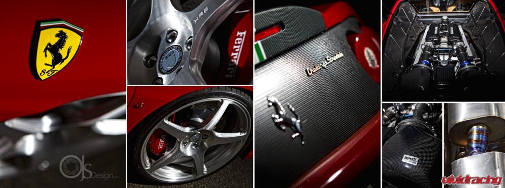 This Ferrari 360 is damn right sexy! Sporting its beautiful Italian self in Puerto Rico, this Ferrari has been equipped with all top of the line products. First, if you want to own a Ferrari, its a must to have it be red. With this 360 Modena is a set of HRE P45SC monoblok wheels. The wheels were finished in a satin silver which give the 1piece monoblok construction a fender filling look for the 20 inch setup. Wrapping the lightweight forged wheels is a set of Hankook Ventus V12 tires in a 235/30/20 and a 305/25/20. The car has been lowered on a set of Moton double adjustable coilovers featuring Eibach ERS springs. With 150lb helper springs, the front uses a 450lb spring and the rear a 700lb spring. Like our very own Project Ferrari 360, he is sporting a StopTech upgraded front 6 piston big brake kit with 380mm 2piece floating rotors. Inside the car is a custom DCT Ferrari steering wheel with red 12 o’clock racing stripe on a carbon fiber accented top with lower preforated leather wrapped hand grips. With some exterior accents including the Italian racing stripe, the car has also been equipped with the Agency Power carbon fiber Scud style spoiler, a carbon fiber diffuser, and Challenge Stradale style mirrors. Performance of this V8 machine is enhanced by a carbon fiber GruppeM cold air intake kit and the latest titanium exhaust system from Agency Power. No expenses spared, this Ferrari 360 is just as aggressive as any of its older brothers on the block.