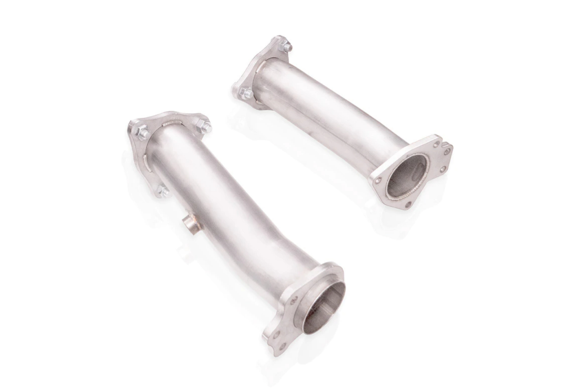 Unleash the hidden potential of your 2020-2021 Corvette C8 6.2L with new high-flowing midpipes from Stainless Works. Built by expert American craftsmen, these 3-inch mandrel-bent pipes come in two variants. Choose between the high-flow catalytic converter option and the off-road leads option. The former is intended for street use, while the latter is ideal for track use.