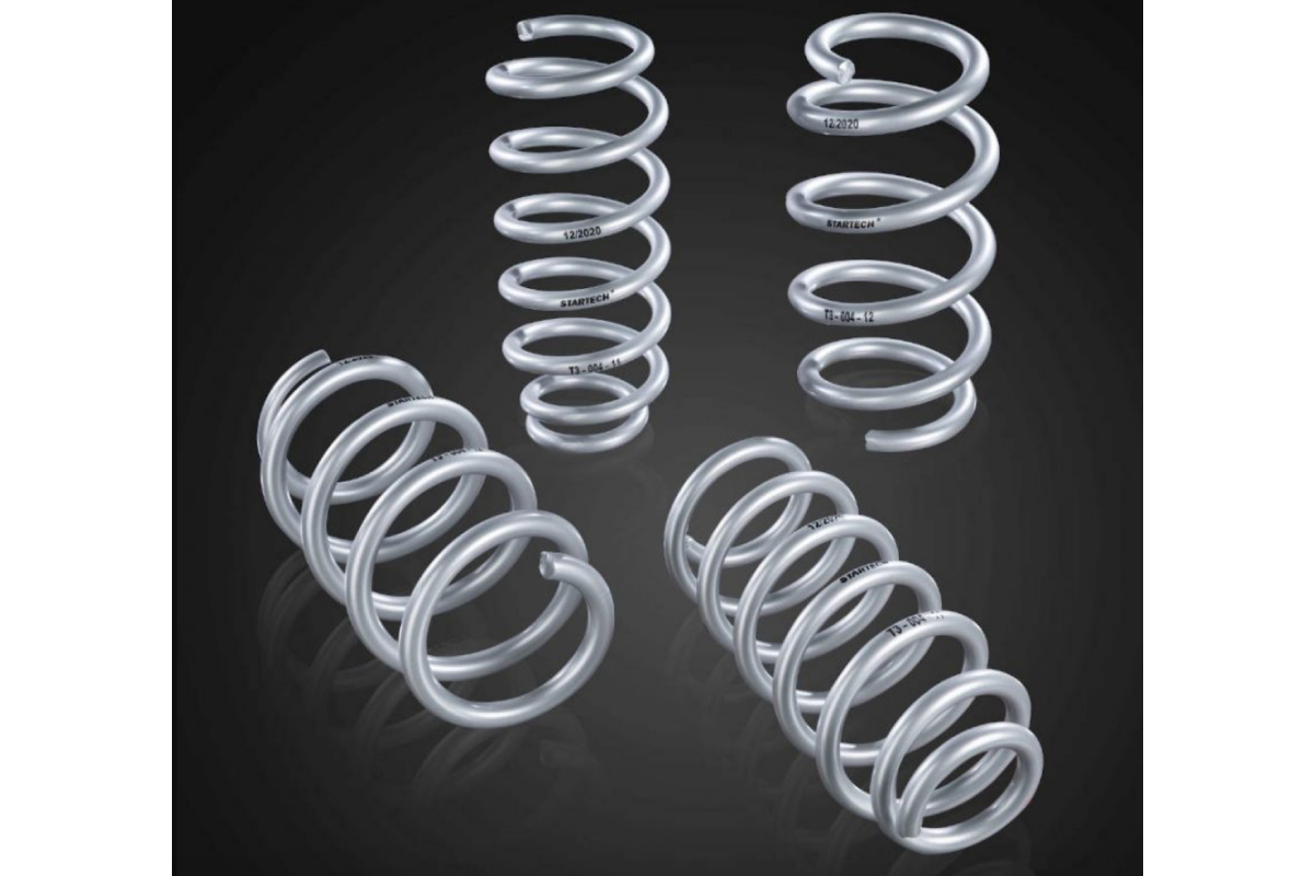 In addition to a new pair of shoes, give your Tesla Model 3 car an even more aggressive appearance with STARTECH’s sport lowering springs. Not only will your car look great, but these springs will optimize the car’s driving dynamics further as a result of the lower center of gravity. These sport lowering springs will lower the ride height of the all-wheel-drive versions by about 30 millimeters (1.2 inches) and by about 40 millimeters (1.6 inches) on vehicles with rear-wheel drive.