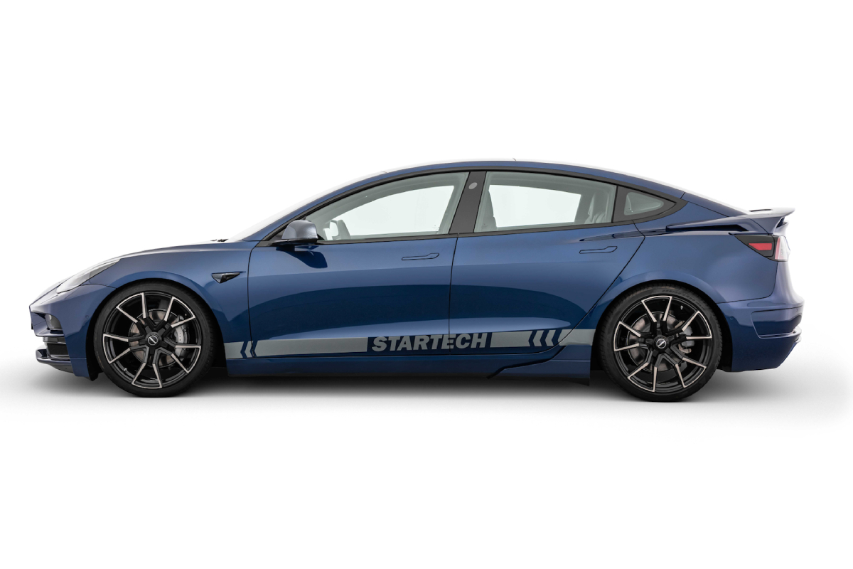 Yesterday, we introduced you to STARTECH’s new and exclusive high-end refinement program for the fully electric Tesla Model 3 sedan. The program consists of an aerodynamic package with a front and rear fascia, rear wing, side flaps, chrome deletes, and painted door handles. (See it here!) But that wasn’t all. The STARTECH program also includes sport lowering springs and tailor-made wheels to help take your Model 3 to the next level and truly set it apart out on the road. If you have been looking to modify your Model 3 with some goodies, this refinement program is exactly what you need.