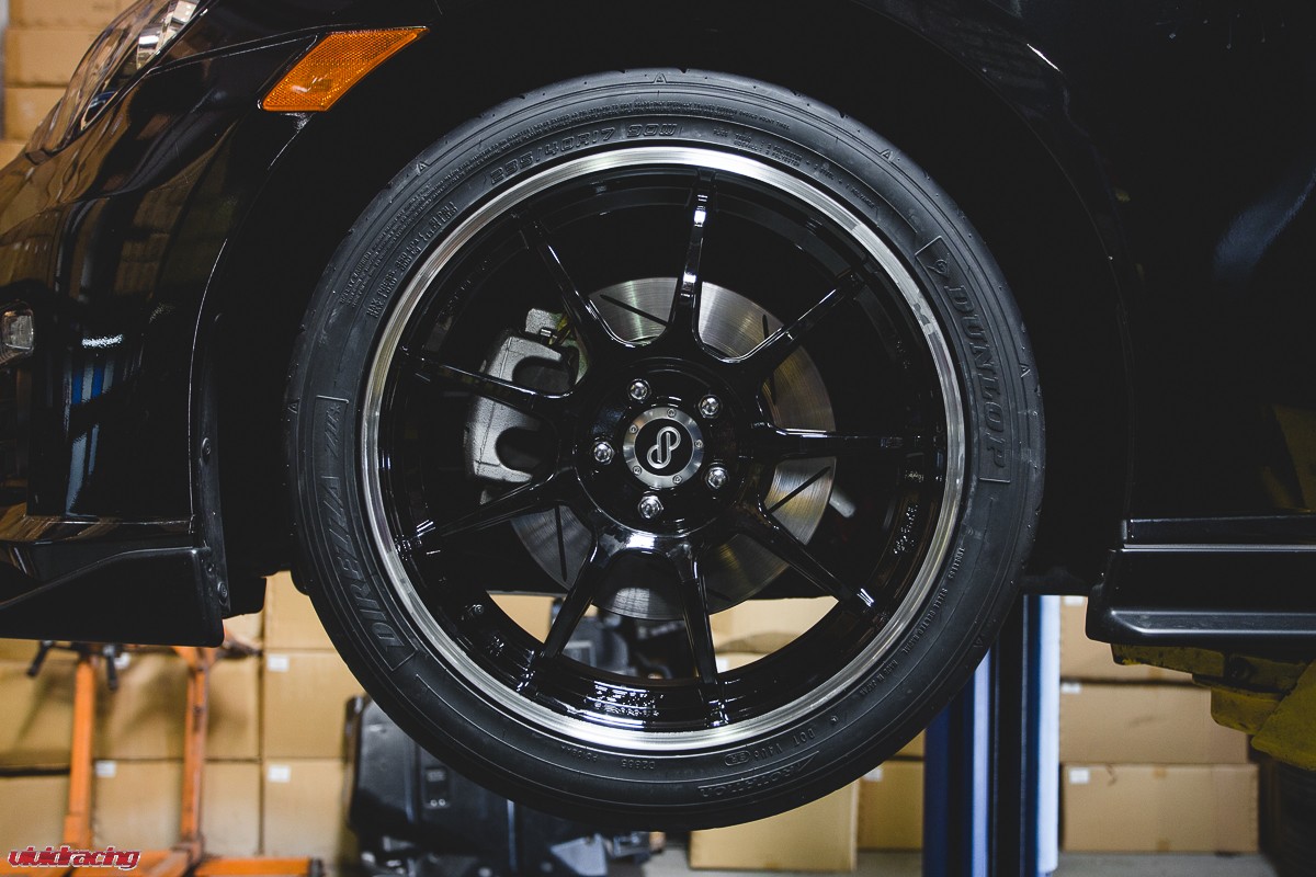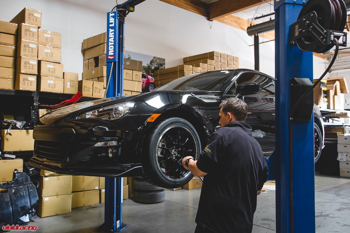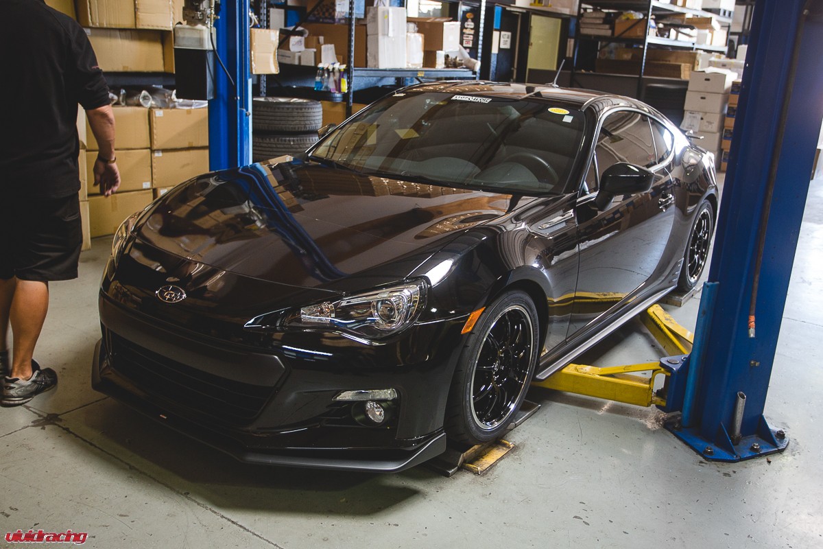We fitted our customers Subaru BRZ with a set of 17″ Piano Black Enkei RSM9 Wheels wrapped in Dunlop 235/40 tires. The RSM9 is a sports wheel infused with Enkei’s racing technology. Its sporty nine spoke design incorporates an ideal depth-to-height ratio for a striking look and features deep “side cut” to shave off extra weight to achieve the ultimate in performance. Enkei’s original MAT- Dura flow forming process gives the RSM9 unrivaled strength and rigidity. The face of the RSM9 is painted using Enkei’s exclusive piano black finish, which contrasts perfectly against its machined lip. Anti- slip paint on the inside of the wheel reduces the tendency toward tire distortion during extreme acceleration.