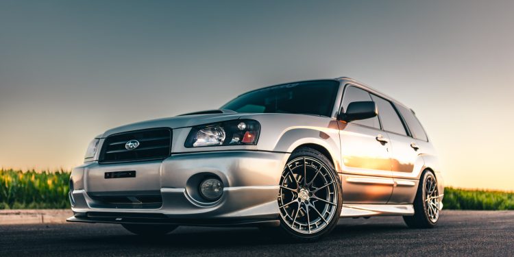 Our customer is the proud owner of a five-speed 2005 Crystal Gray Metallic Subaru Forester XT. The car is lowered on a set of Swift springs to get that ultimate sporty stance paired with unmatched handling and performance. He was in the market for a set of wheels that would really accentuate the XT’s natural DNA and look great with its new lowered look. Daidrian went with the VR Forged D03-R monoblock wheels in a custom 18-inch setup finished in our lustrous Hyper Black color. These D03-R wheels measure 18×9.5 all around with a +38mm offset and 5×100 bolt pattern. The fitment is flawless and the finish looks incredible especially in that unmatched sunset lighting (see photos below).