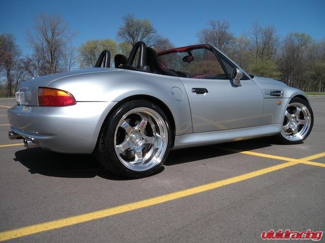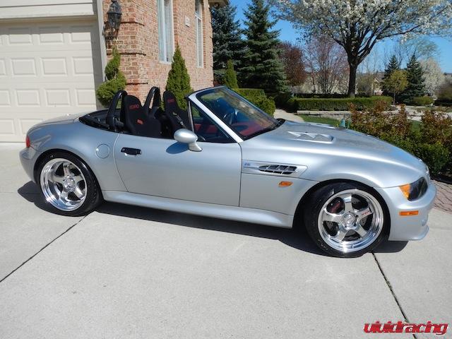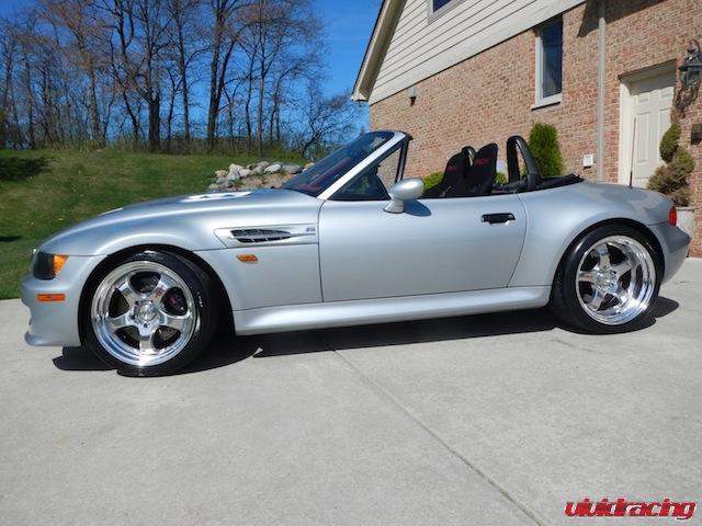 This customer fired over these photos of his fresh new shoes he got from us here at Vivid Racing. Our Work Wheels Store has some of the sickest wheel options you can get from the ultra flush, to the ultra unique. All we know is this bad boy has been Turbocharged from its original inline 6cylinder motor that was already M Powered. The BMW Roadster I feel is one of the best and most fun roadsters to drive since it came out. At the time it dominated the Porsche 986 Boxster and others similar such as the S2000 and Miata where in no comparison. To take this beautiful silver vert to a new level, he choose to go with a set of Japanese Work Meister S1R wheels. The front is a 18×8.5 +38mm with A disk and the rear is a 18×11 +19mm with a O Disk. The wheels have been finished in their BBF. What is BBF? How about Bright Buff Finish. Yes you can do your hair in them they are so shiny! We also spot on this ride a set of Wilwood Brakes and Recaro Seats! Check out more BMW M Parts Here.