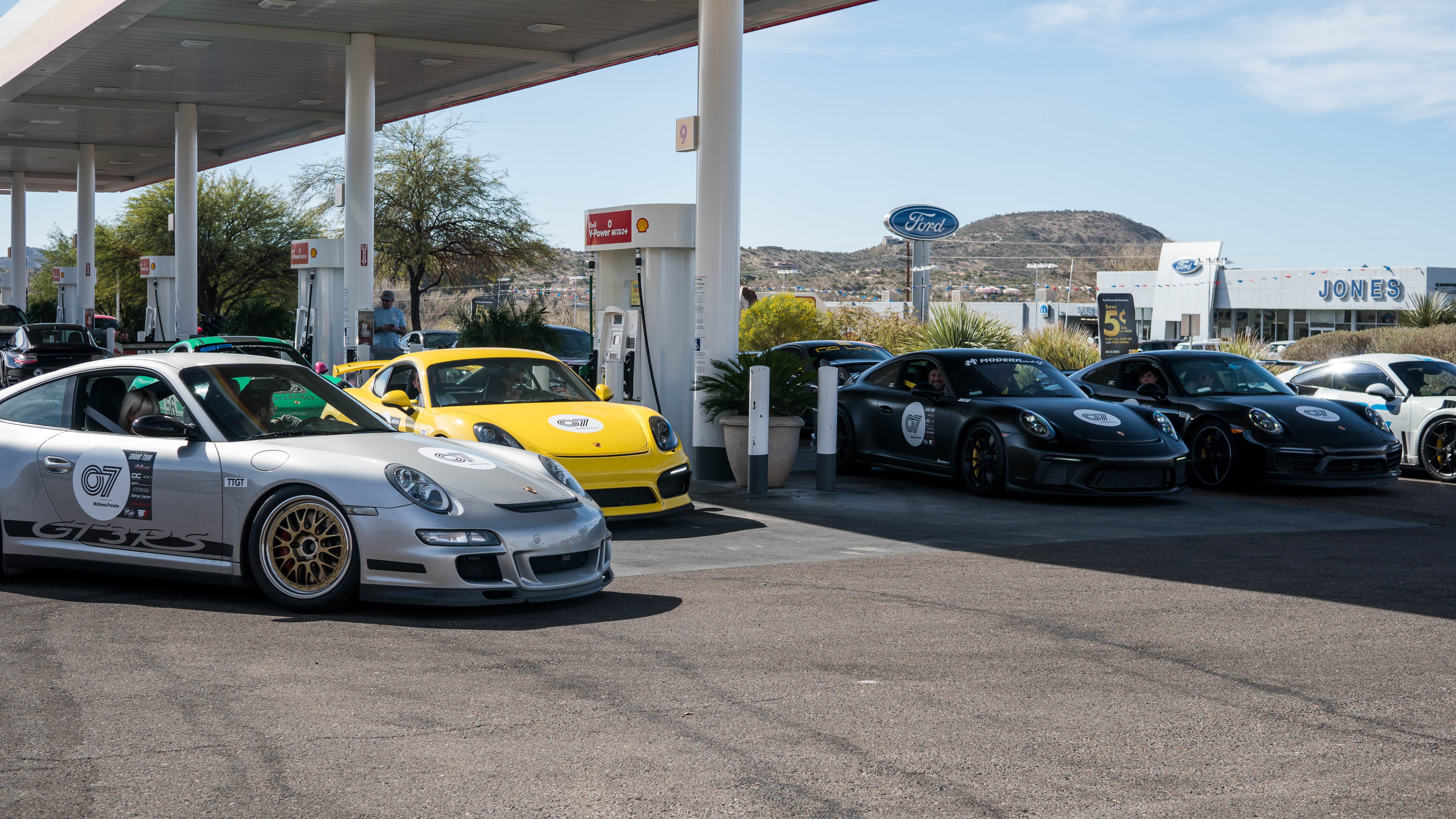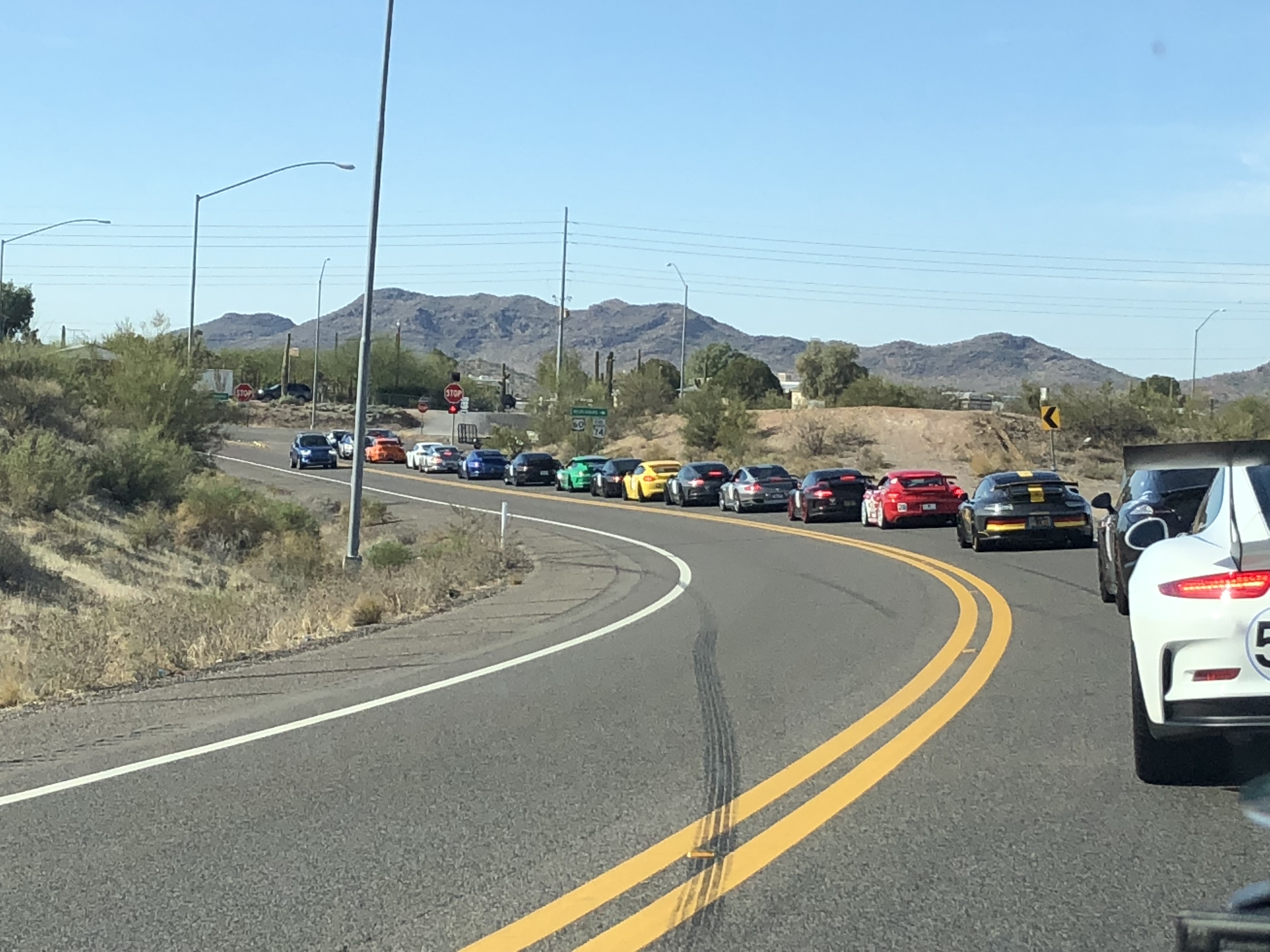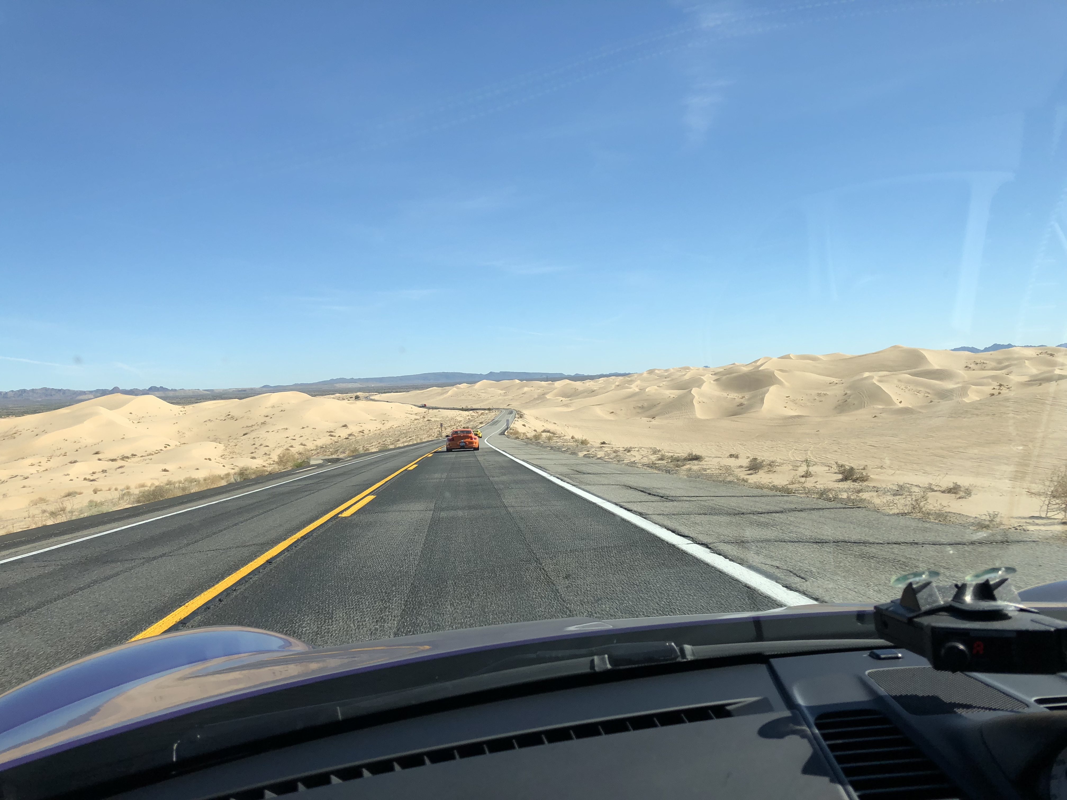 The following morning would have a brief drivers meeting before we headed off to some amazing roads. Returning to go past the Salton Sea, our adventure would take us towards Glamis on Highway 78 known for the intense sand dunes and off-road playground. These roads had amazing rollers and allowed for some really spirited driving. Eventually this would put us out in Blythe, California. With a quick lunch stop, the crew would head back out on the I-10 to eventually disappear on the US 60 towards Wickenburg. With some drivers having an unfortunate meeting with the Arizona Highway Patrol, the rest of us cruised on through an unknown 2 lane road called Vulture Mine Road. Eventually, this spit us back out on to the I-10 with a straight shot to a quick checkpoint at the Vivid Racing HQ.