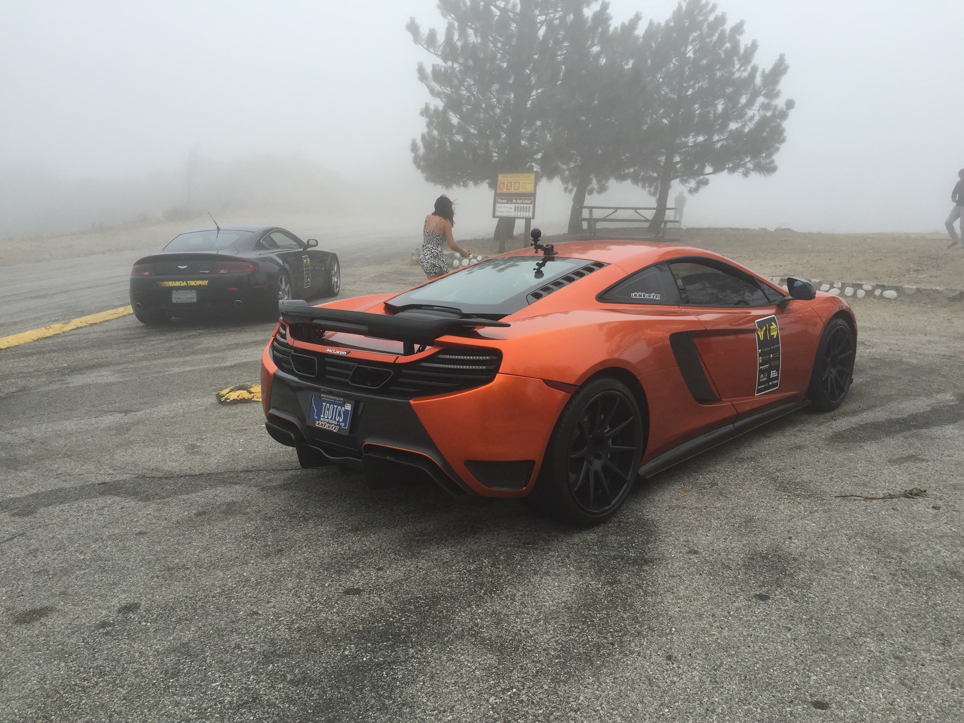 The format of the rally is simple… its based on a set bogey time with checkpoints along the way. The one who hits all the checkpoints and has the closest time to the bogey set wins. With 50 supercars for the rally, the turn out would definitely make the event more fun. Lots of cars from other Mclaren’s, Lamborghini’s, Porsche’s, and more. VF Engineering had their supercharged Huracan there, one entrant had a full Vorsteiner 991 Turbo, and there was also a 675lt on hand. The rally launched at 11:30am and headed north on PCH. After a bit of highway driving and traffic, we ended up going to the top of Angeles Crest. Never been, Google it, road is amazing and challenging. 2 lane road with hairpin turns and steep inclines. With the weather cloudy and a light mist, it was like traveling into the unknown. We bombed down the other side after a quick picture at the top and headed to one of our checkpoints, “order a shake at In and Out”. Can’t complain about that!