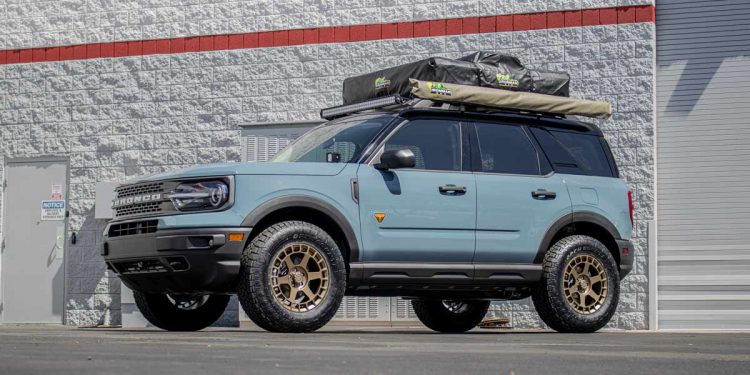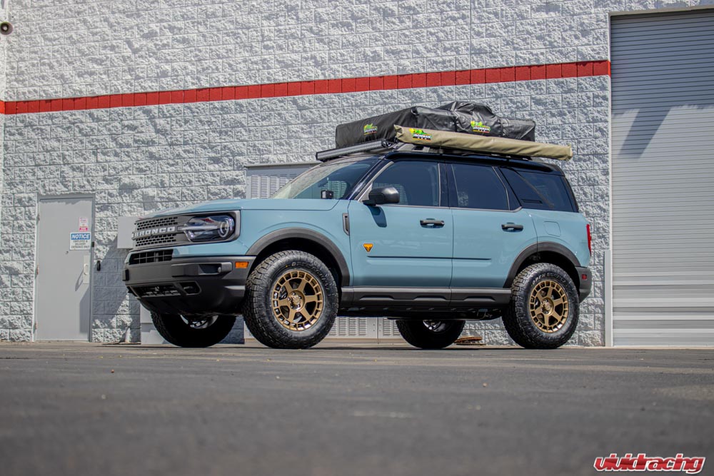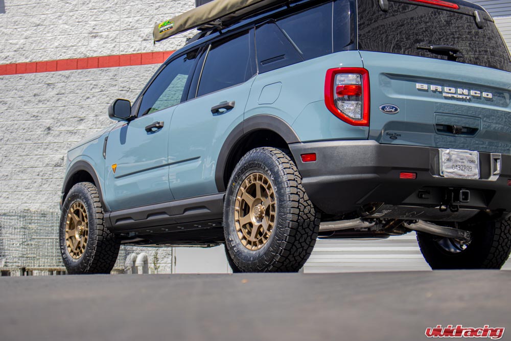 Our Project Bronco Sport (shown below) is sized in 17×8 at all four corners and finished in a stunning Satin Bronze and Matte Black finish that contrasts the paint job perfectly. We a +30 offset with a 63.4 center bore and 5×108 bolt pattern, which perfectly matches the Bronco Sport. They weigh 9.8 kilograms (21.6 pounds) and have a load rating of 3600 kilograms (7936.6 pounds).