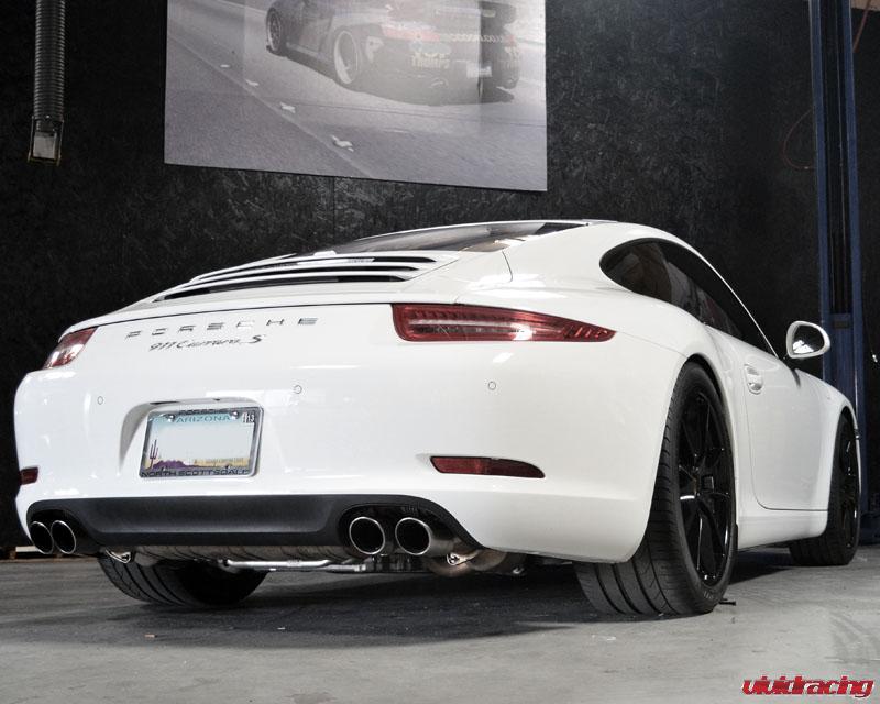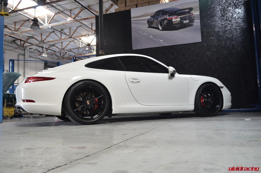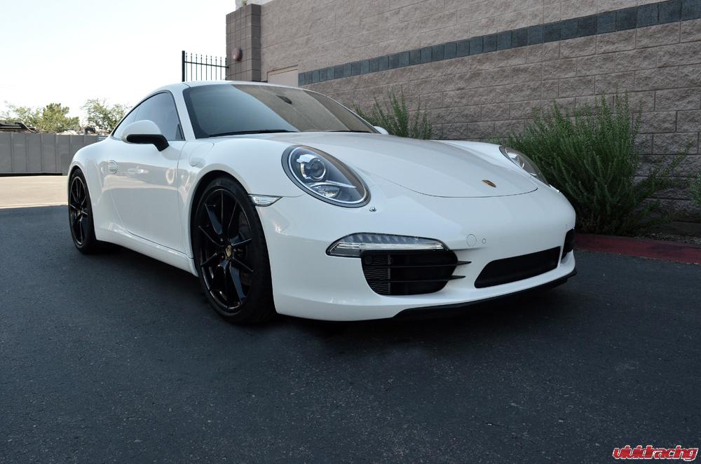 Just finished installing a set of H&R spacers on this 991 Carrera S we have been playing with. Flush is here to stay! The H&R spacers in the front are a 7mm and the rear are a 14mm with corresponding longer wheel studs. We then have black lug caps to go with the stock powder coated black wheels. The H&R springs lowered the car perfectly 1.2″ in the front and 1.0″ in the rear. Setting it off with a nice 20% tint job, I am a fan! Like this setup, get yours here –