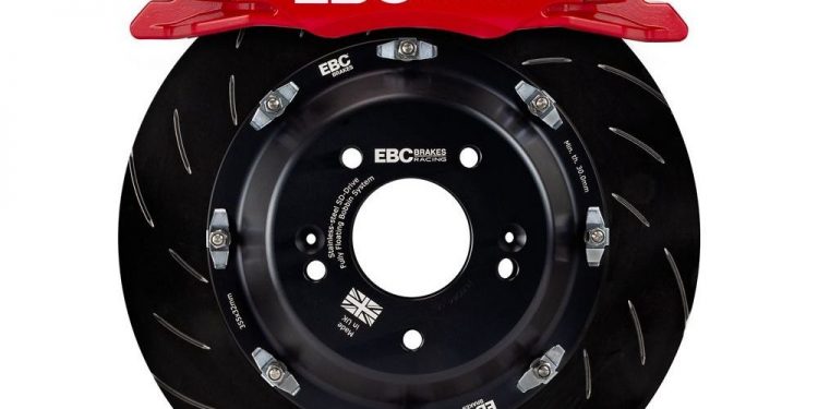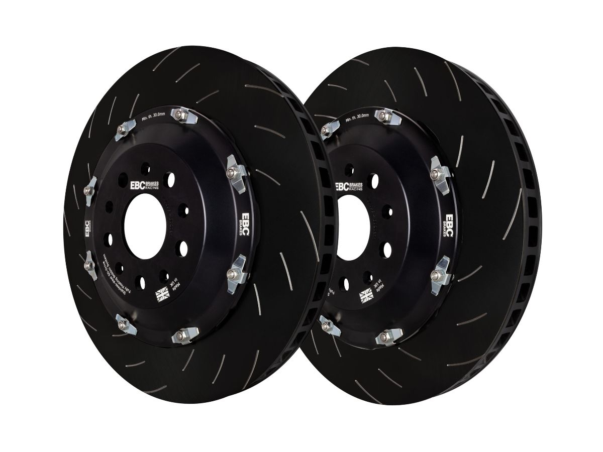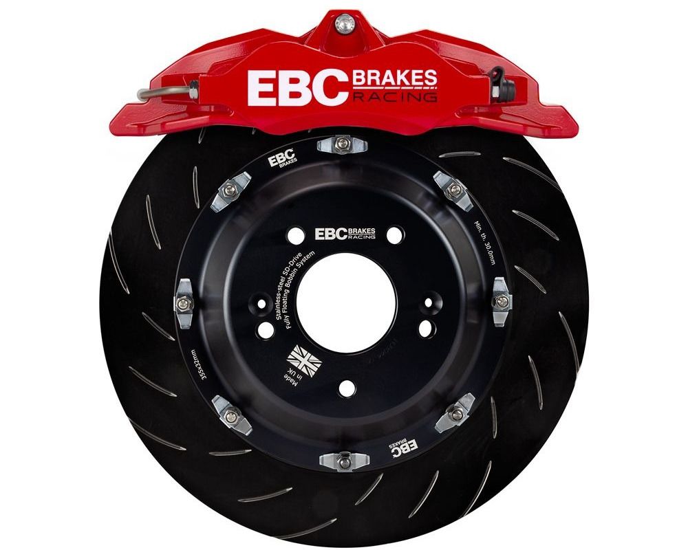 EBC Brakes Racing complete kit also includes fully-floating 330x28mm two-piece rotors that allow the outer ring to expand freely in response to heat (this reduces stress which in turn extends disc life and reduces the tendency for rotor cracking during extreme use)