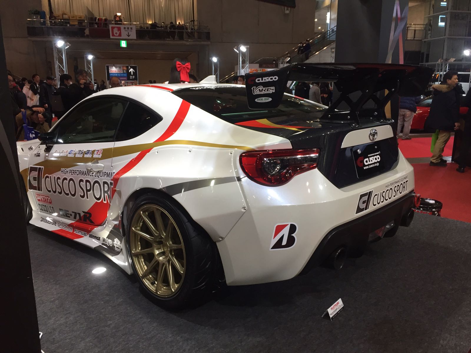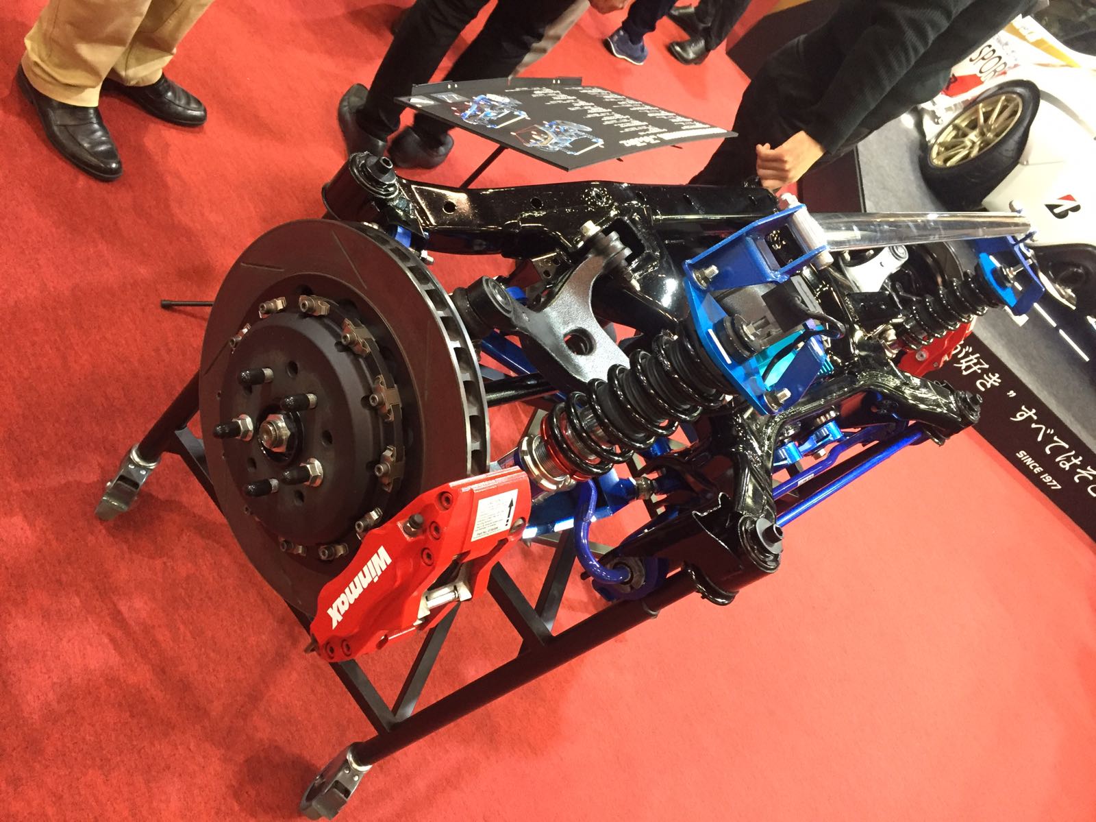 Cusco is best known for their roll cages and chassis bracing, but they also produce limited slip differentials and many other parts. At their booth was a wide body Toyota 86 and the entire rear subframe of a Toyota 86 equipped with a ton of their parts. Also at their booth was a table full of differential, transmission, and brake parts.
