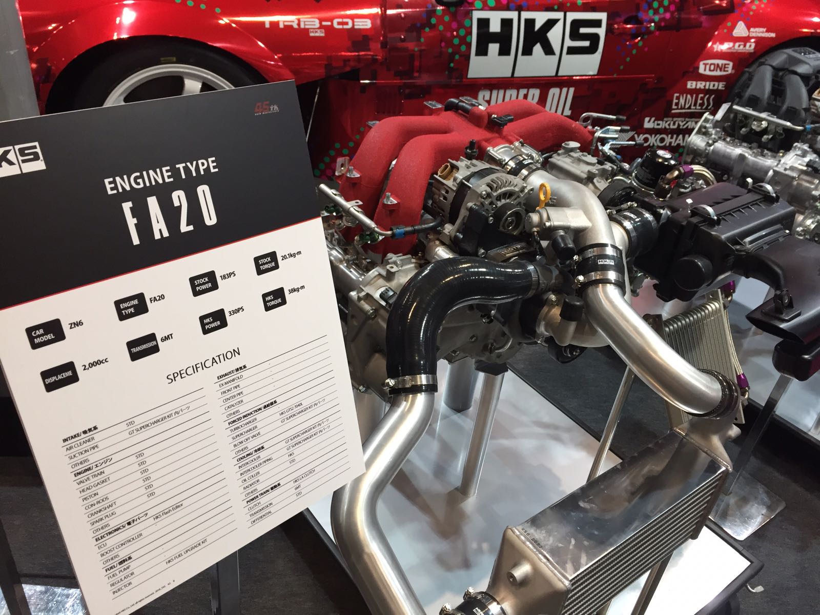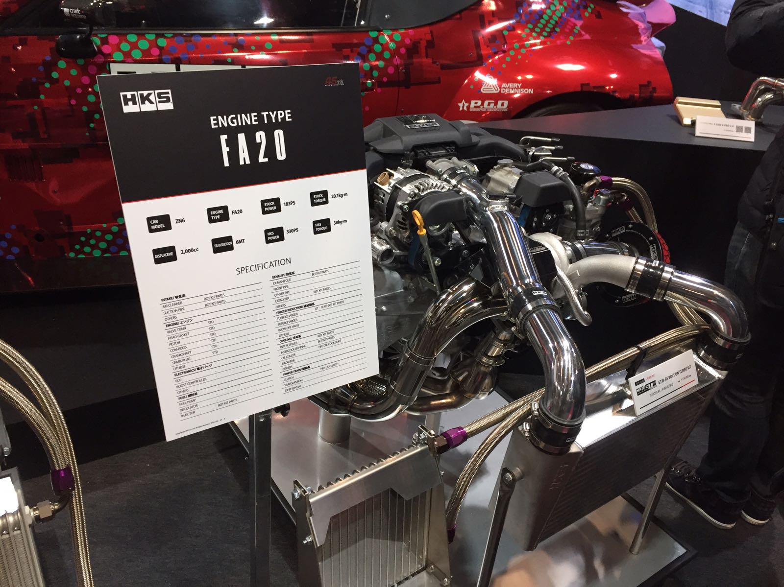 HKS is one of the biggest names in the JDM market. At their booth was an insanely wide Toyota 86 race car and two FA20 engines. The first engine is equipped with their supercharger kit and the second engine is equipped with their turbocharger kit.