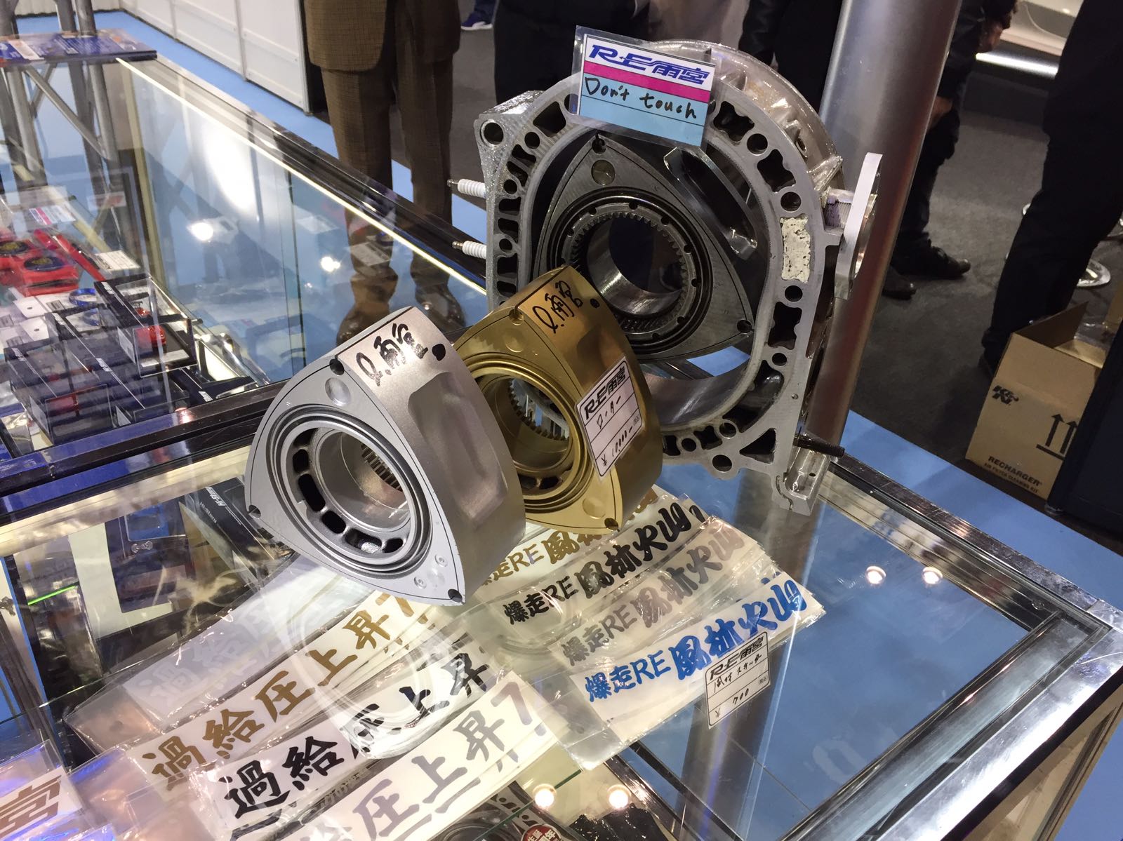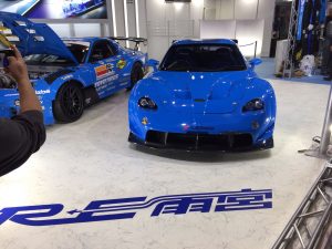 RE Ameniya is best known for their RX7 parts. Predictably at their booth were two RX7s in the blue color that RE Ameniya is known for. They also had a rotary engine on display with a couple of rotors next to it.