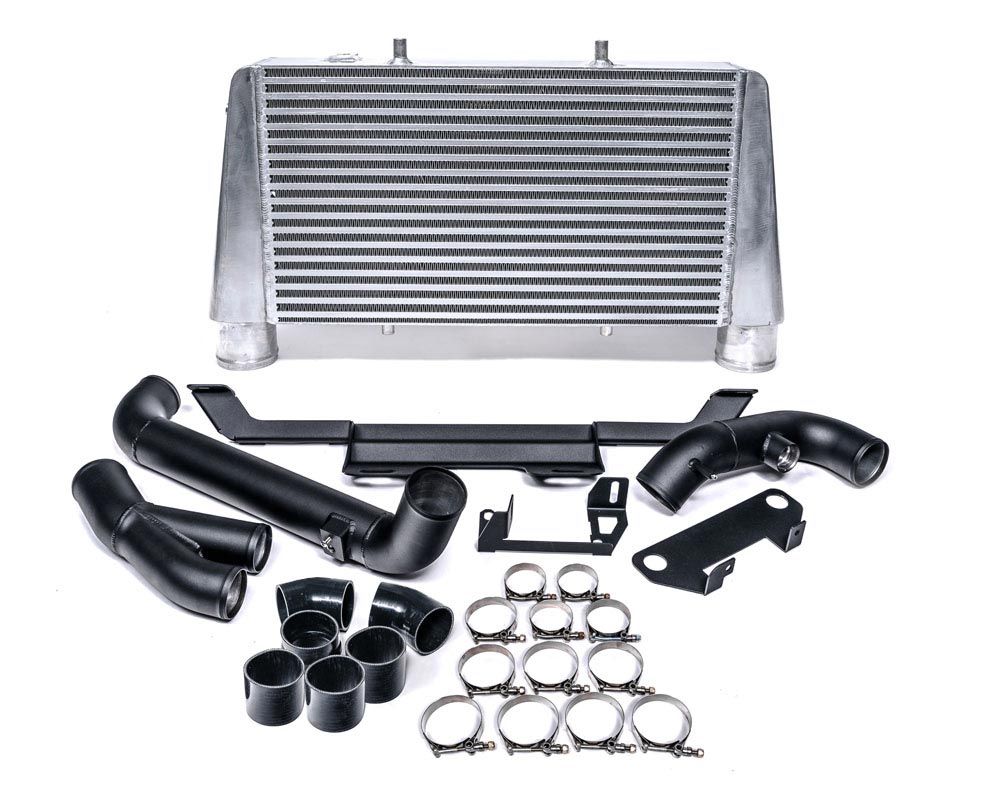 The Vivid Racing Upgraded Intercooler has integrated aluminum high volume end tanks compared to the OEM intercooler, which uses plastic end tanks. The aluminum end tanks are designed to improve air flow and help dissipate heat more efficiently. Each kit comes with mounting brackets and aluminum intercooler piping that has been powder coated black for sleek and durable finish. The factory electronic blow-off valve is retained and kept as a fully closed loop system to keep you going in any condition. The kit also includes all necessary hardware and couplers for a clean installation.