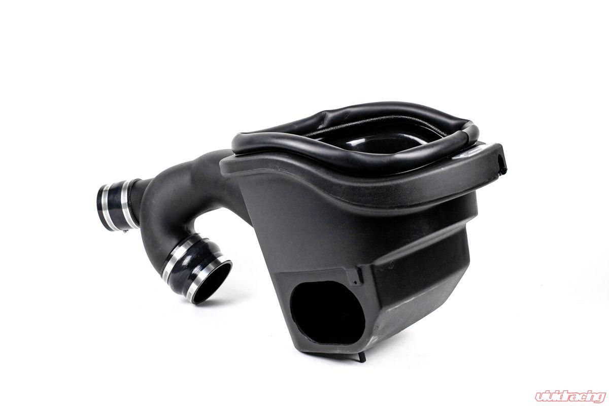 Vivid Racing’s intake design and manufacturing is all done here in the USA. The custom high flow cone filter has a large diameter flange taking in air from 360 degrees around. The box design has been engineered to integrate with the factory air snorkel. The air filter is sealed off from hot engine air with a rubber gasket that is mounted to the one piece box. Connecting the air filter to the two turbochargers is a one piece, roto molded intake tube that splits off with a clean seamless merge. With this design, the VR intake tube flows over 100% more air than the stock intake tube. The intake is finished off with an integrated sensor mount, Vivid Racing silicone couplers, and required hose clamps.