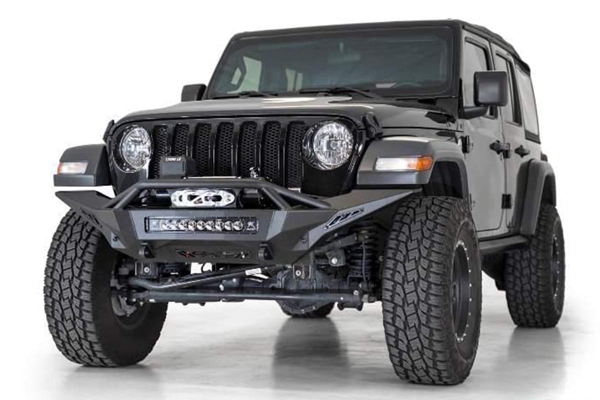Addictive Desert Designs Stealth Fighter Bumper protects the grille from any front end collisions. The bar that extends over the top of the bumper offers immense strength, protection, and also a mounting point for a winch. Having a winch attached to the vehicle can save you or a friend in numerous ways.