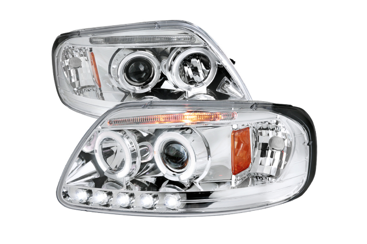Light up the road ahead for a safer and more enjoyable drive in your Ford F-150 with these Spyder Halo Projector Headlights. Halo projectors combine the elegant halo look with LED lights that dramatically improve your vehicle’s front-end appearance as well as its lighting performance. This way, you can conquer new roads with added confidence and safety to transform your overall truck experience. These headlights are sold in pairs and available in black or chrome finish for a variety of vehicles.