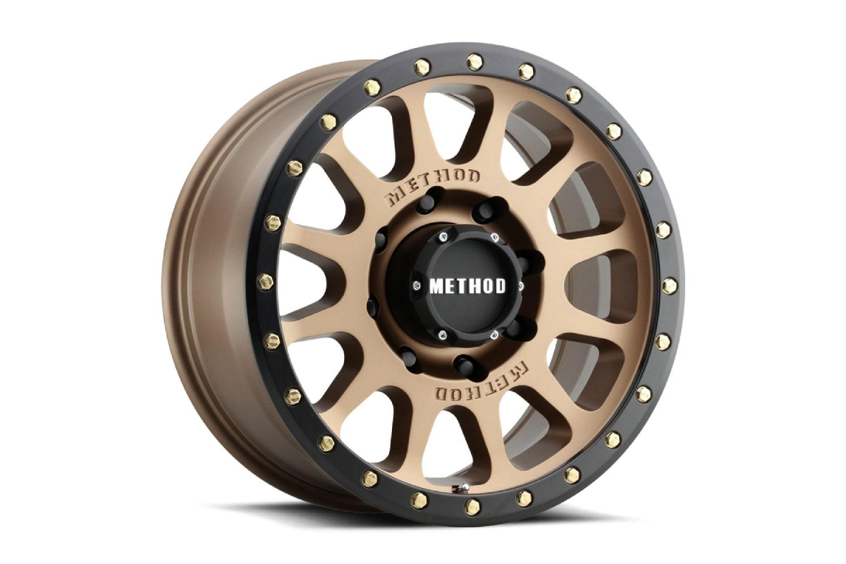The MR305 wheel boasts a solid A356 construction with T6 heat treatment and an impressive load rating of up to 4,500 pounds. It spotlights a striking 12-spoke design with debossed METHOD logos on the face. This is a look not yet seen on other Street Series wheels in Method’s lineup. The MR305 also features a simulated beadlock ring by way of strategically placed under-cut on the outer lip of the wheel. Around the lip are removable gold zinc-plated bolts for added styling. These wheels come in a number of finishes to suit the look you’re going for, including matte bronze, matte black, and machined.