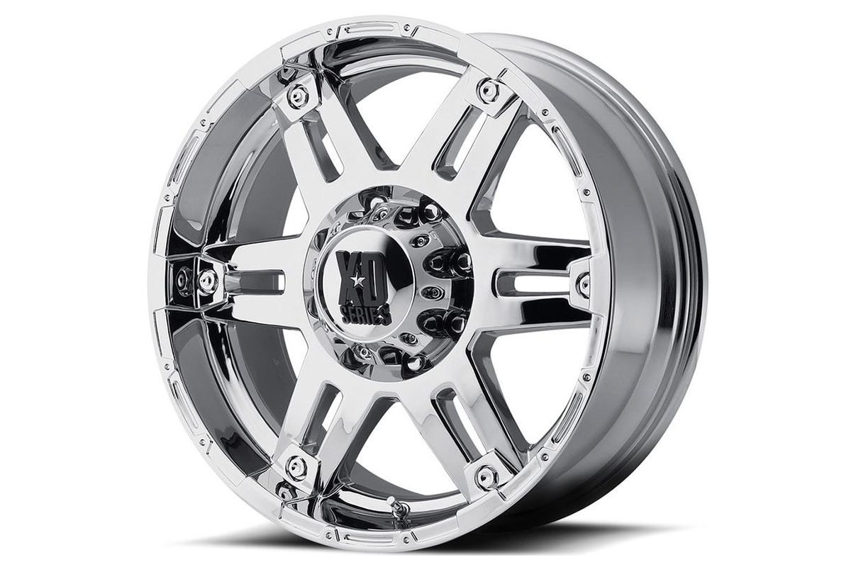 The XD797 Spy wheel has a wide split six-spoke design with a simulated rash ring. It features machined details that roll over into the lip for a streamlined appearance that is simple but aggressive too. Offered in a gloss black machined or chrome finishes, the Spy wheel looks like it was made for the off-road with a bolt-on center cap that features the well-known XD Series logo. The clear coat finish is tough enough to stand up the elements of daily driving and off-roading while the one-piece cast aluminum construction proves that this wheel is not only built to look the part, but made to perform it just the same.