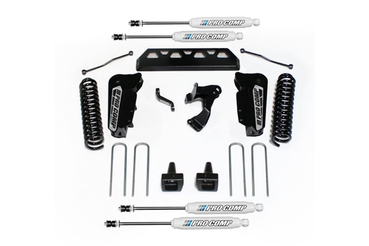 The Stage 1 4-Inch Lift Kit with ES9000 Shocks is a direct-fit package for your F-250 diesel truck. This completely redesigned lift kit includes ES9000 front and rear shocks with precision laser-cut radius arm drop brackets to correct your truck’s steering geometry and ensure a smooth, comfortable ride quality. The Pro Comp ES9000 is the ultimate nitrogen gas-charged shock absorber. With its twin-tube design and 10-stage velocity-sensitive valving, the ES9000 not only delivers a super comfortable highway ride, but also enhances off-road handling and performance. Engineered for those who demand optimal capacity for heavy loads as well as the most demanding driving conditions, these shocks ensure maximum strength and long-lasting durability.