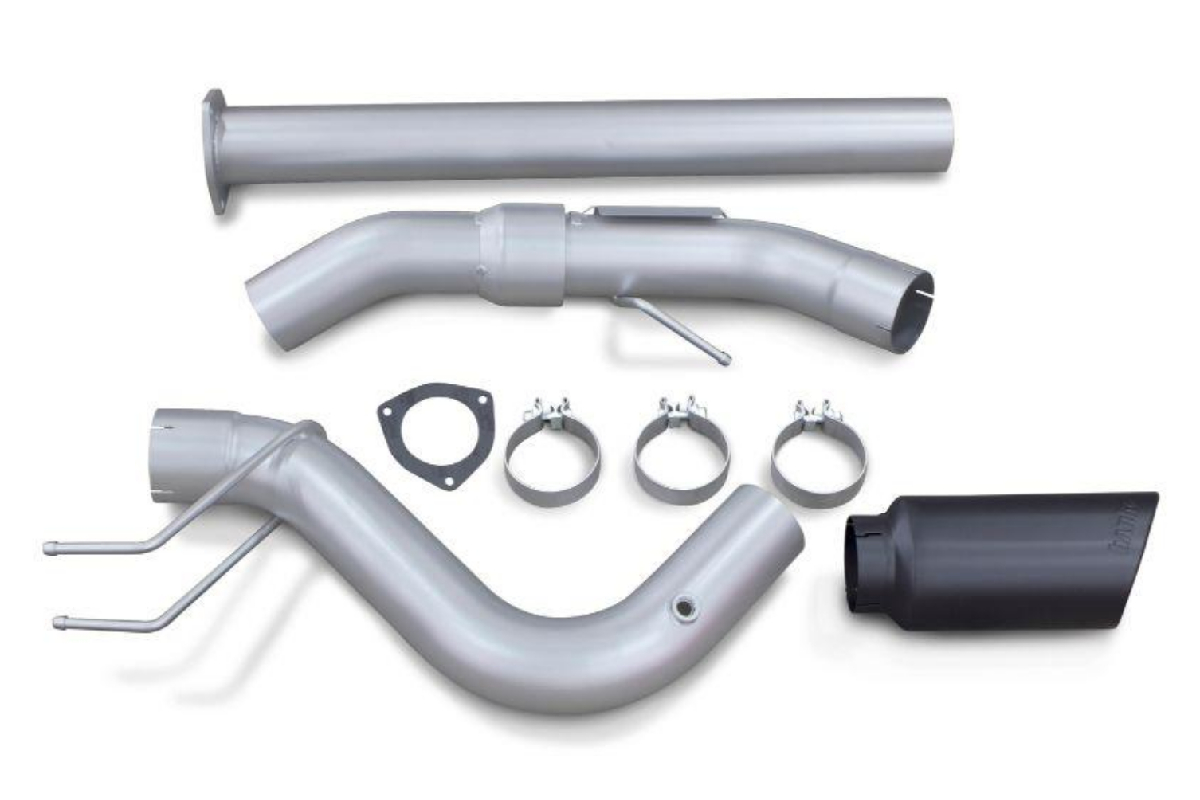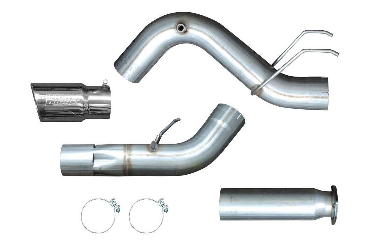 Each exhaust kit is precision-cut and bent from 409 stainless steel for its long-lasting, corrosion-resistant properties and easily bolts together using the included hardware and gaskets. The strategic design ensures that your engine gets the maximum amount of airflow which helps keep exhaust gas temperatures lower. This DPF-back exhaust comes with all of the necessary components needed for a seamless installation for any cab or bed size configuration as well as a Sinister Diesel rolled edge 5-inch tip.