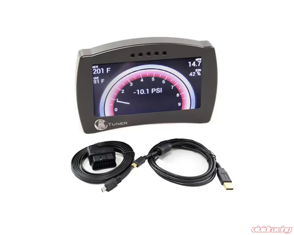 The KTunerFlash V2 features a 5″ touchscreen display that can show essential sensor data in real-time as a digital dash display. Though it’s meant as a handheld a simple Dual-T bracket can be added to allow mounting on a variety of inexpensive Dual-T mounts. Through a simple to use touch interface you can choose between different layouts, multiple data items, and even color options on layouts that support color changes.