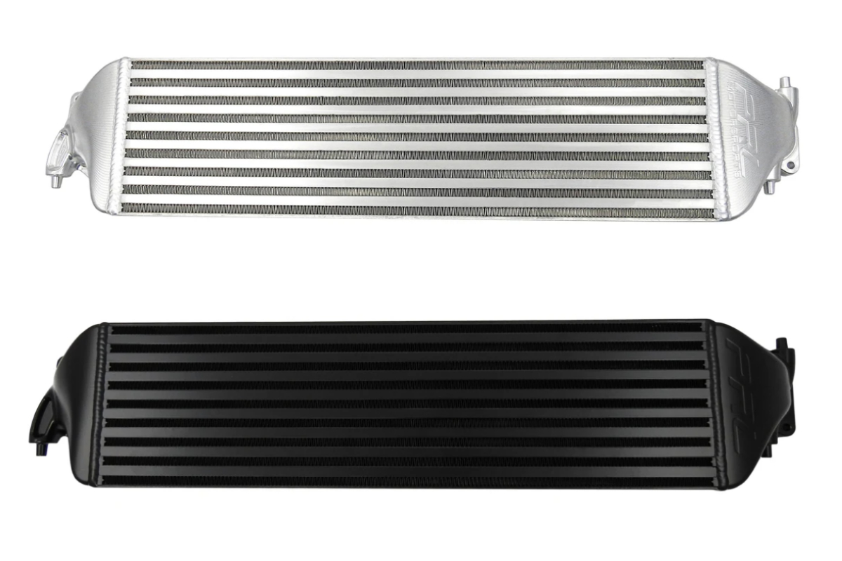 The PRL Motorsports Billet Intercooler Upgrade comes in a raw option and a black powder-coated variant. It decreases charge air temperatures while increasing potential airflow with its dense 26.5” x 3.5” x 7.25″ 550-plus horsepower rated bar-and-plate core. PRL’s intercooler core also increases surface area by 85 percent and internal flow by 83 percent to allow for optimal cooling and airflow, which translates to better performance. The billet machined aluminum end tanks maximize efficiency while looking as smooth as they flow. Other advantages to PRL’s Billet Intercooler are increased turbocharger spool, noticeable mid-range power gains, better efficiency and consistency, engine safety, and gains of up to 3 horsepower and 11 pound-feet of torque with this simple bolt-on upgrade!