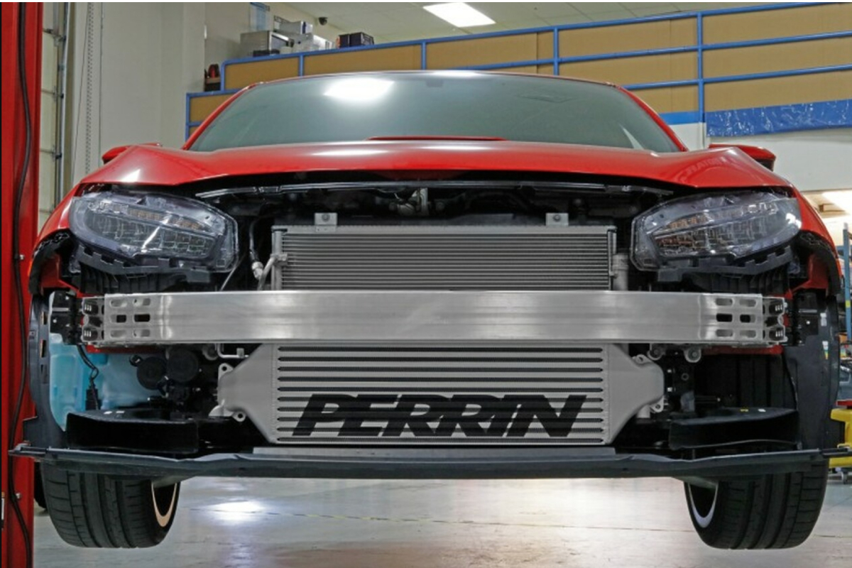 The Perrin Performance intercooler will help your Honda Civic Type R breathe easier and better with some much-desired power all without needing a tune! The Perrin all-aluminum, silver powder-coated front mount intercooler is built for straight bolt-on power gains! Rated at over 600 WHP, this intercooler adds 15-20 WHP and 15-20 pound-feet of torque to your vehicle. It reduces intake charge temps by 40 degrees Fahrenheit and the colder air charge creates more power than the factory intercooler. On the track, post intercooler charge temps were shown to remain within 10-30 degrees above ambient temps, all while maintaining a pressure drop of less than 1psi. Not only does this upgrade deliver better performance, though, but its front-mount design also gives off a bolder aesthetic for the Type R’s fascia and is made to withstand the elements so it looks awesome for years to come.
