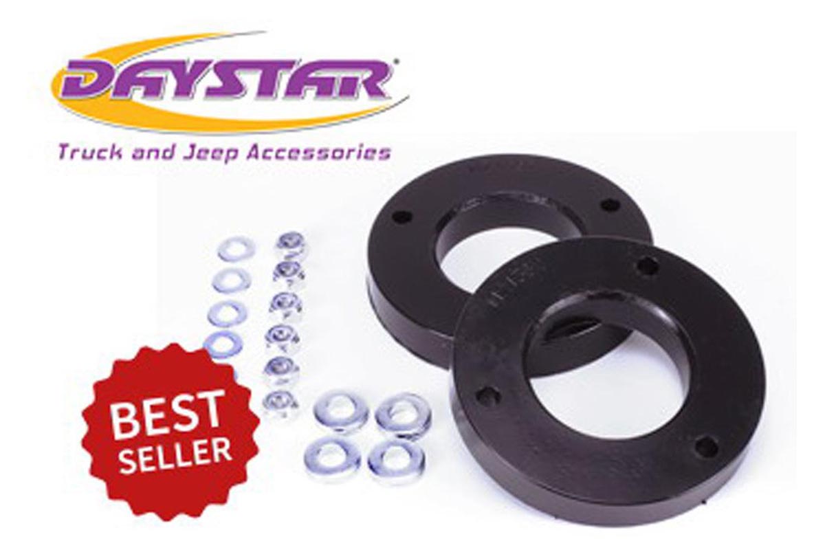 Daystar developed the 2-inch leveling kit to provide an easy installation while retaining the factory suspension geometry. The Daystar leveling kit consists of two strut spacers that install on the top of the strut assembly. This method maintains the factory suspension dynamics, and ride quality which is essential for some owners.