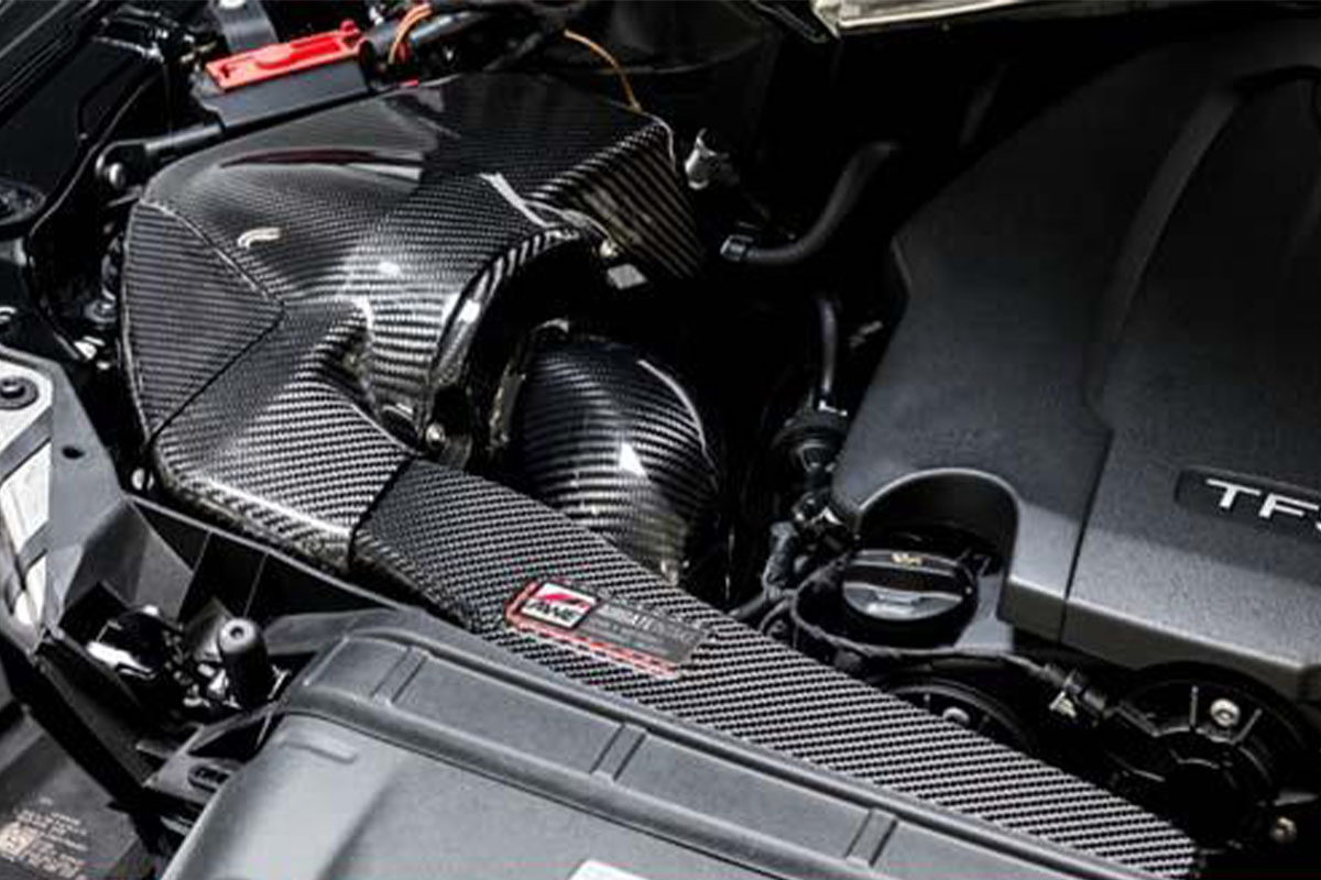 AWE Tuning engineered the AirGate carbon fiber intake to increase aesthetics along with performance while enhancing the natural sound of the induction into the turbocharger. The carbon fiber construction offers a significant reduction in IAT due to the dispersion of heat through the fibers compared to a solid aluminum tube like most competitors.
