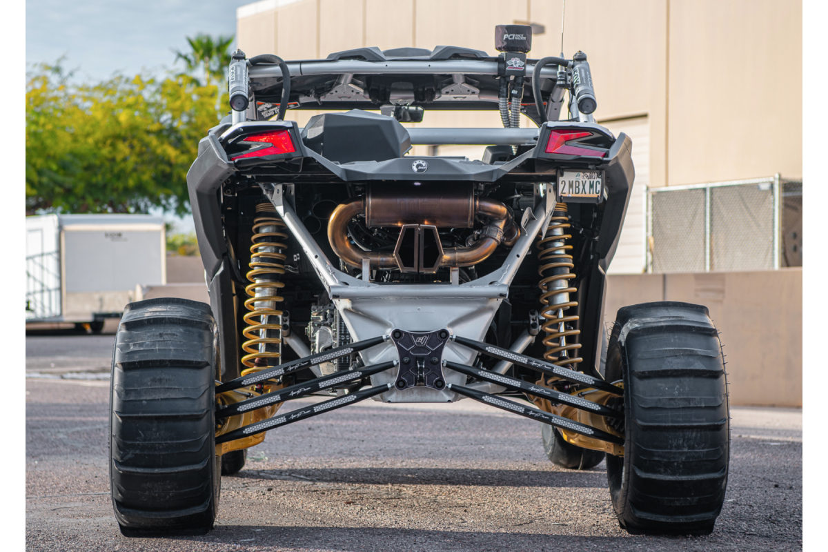 The stock rear control arms on the X3 and X3 Max from the factory are very weak due to their hollow tube design. These can easily bend from small rocks hitting your vehicle when riding off-road and especially during hard landings in the dunes. While having a total of six arms should be strong enough, the OEM radius rods are not as good as they could be and do not offer adjustability either. The automotive aftermarket, however, offers plenty of options should your Can-Am’s radius rods fail and need to be replaced or you just want them upgraded. Vivid Racing has compiled the following five best radius arm kits for the Maverick X3 to make your search a bit easier. You can also view all of our radius rods for the Can-Am Maverick X3 right here.