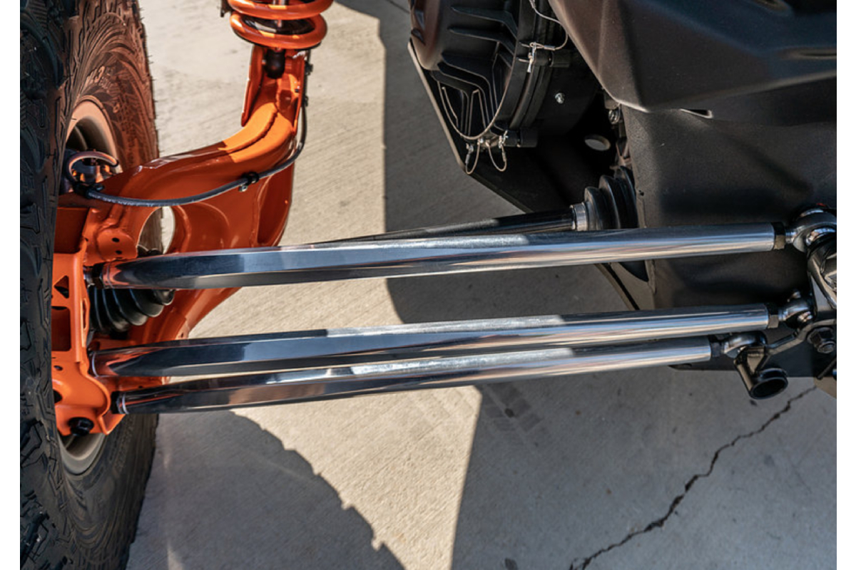 The Madigan Motorsports Rear Radius Rods are a great budget-friendly replacement for your Can-Am Maverick’s stock radius arms. Available in a raw or black finish, these radius rods are crafted from CNC-machined T-6061 aircraft-grade aluminum. The set also includes 4130 Chromoly steel Heim joints. These high-quality radius rods prove to be much stronger than the OEM ones to hold up to even the most intense conditions so you can enjoy your UTV to the fullest. If you are looking for radius arms that will be stronger and handle better than stock without breaking the bank, look into Madigan Motorsports. Testimonials show that these radius arms make successful builds and withstand conditions to last a very long time.