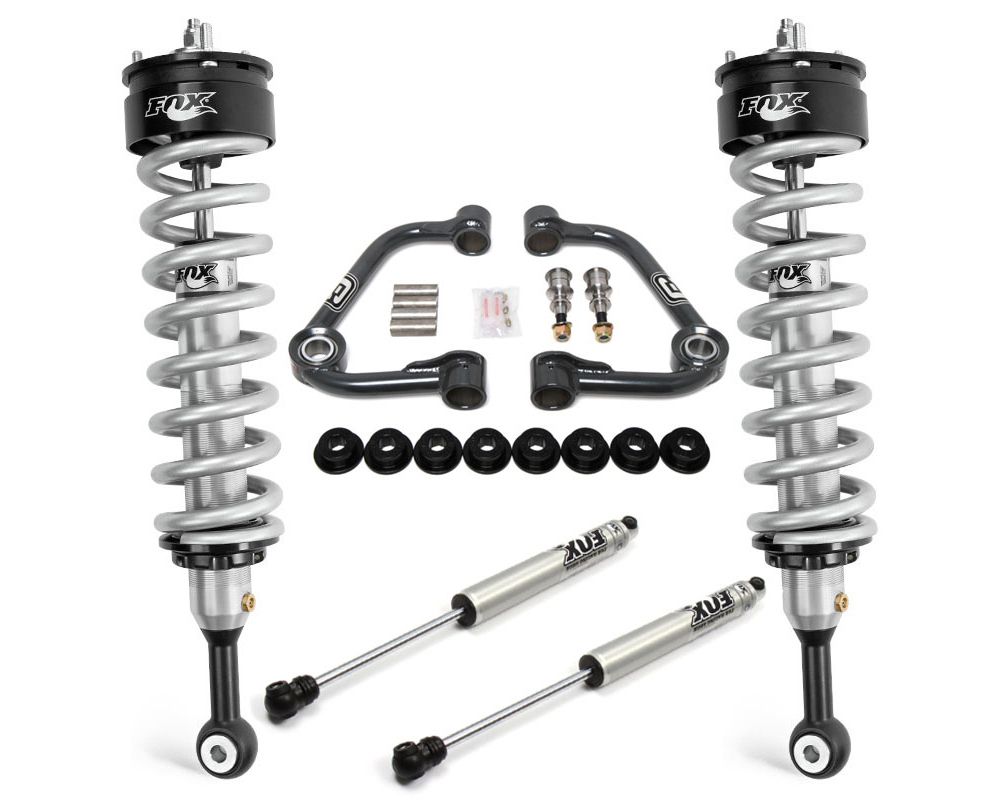 For a leveling kit, we recommend the Camburg Uni Cap UCA Fox 2.0 Trail Series Kit which is available in our shop for just $2,419.79. The Camburg FOX 2.0 Trail Series kit is a great all-around suspension system for your Ford F-150 utilizing FOX’s 2.0 series of shocks. FOX 2.0 Performance Series IFP Coilovers are valved specifically for your application, they can gain 0-2 inches of lift, and increase wheel travel as well.