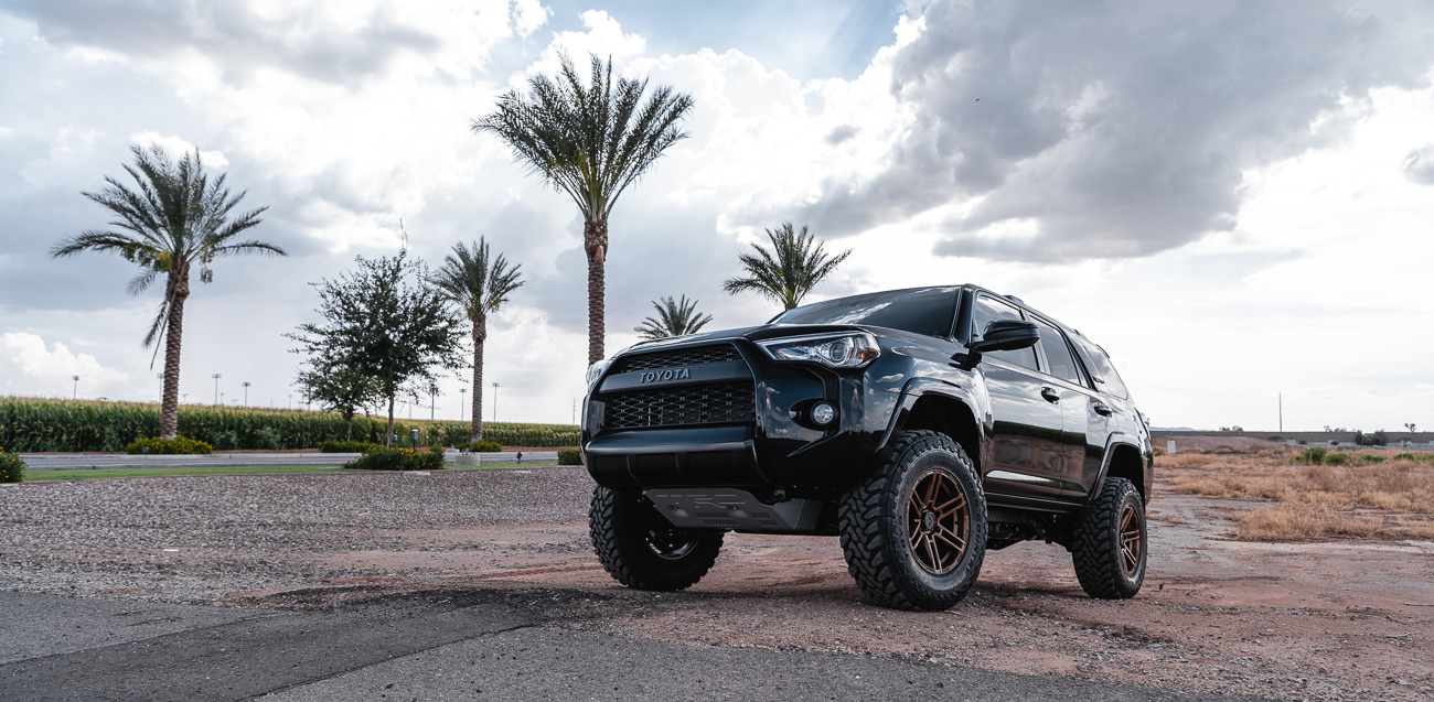 Not too long ago, Vorsteiner decided they wanted to take on the off-road market. They’re one of the biggest names when it comes to aftermarket wheels for sports cars and luxury cars, so it made sense to try to tackle the off-road market. Their first wheel, VR-601, has been massively successful for Ford Raptor and F150 owners. We’ve already written a full article covering the new VR602 in depth which you can read here. Since we’re a large dealer for Vorsteiner, we get early access to a lot of their products. In this case, we received one of the first production sets of the VR602 in Highland Bronze. The set was destined for @bandit_pro_t4r’s Toyota 4Runner.