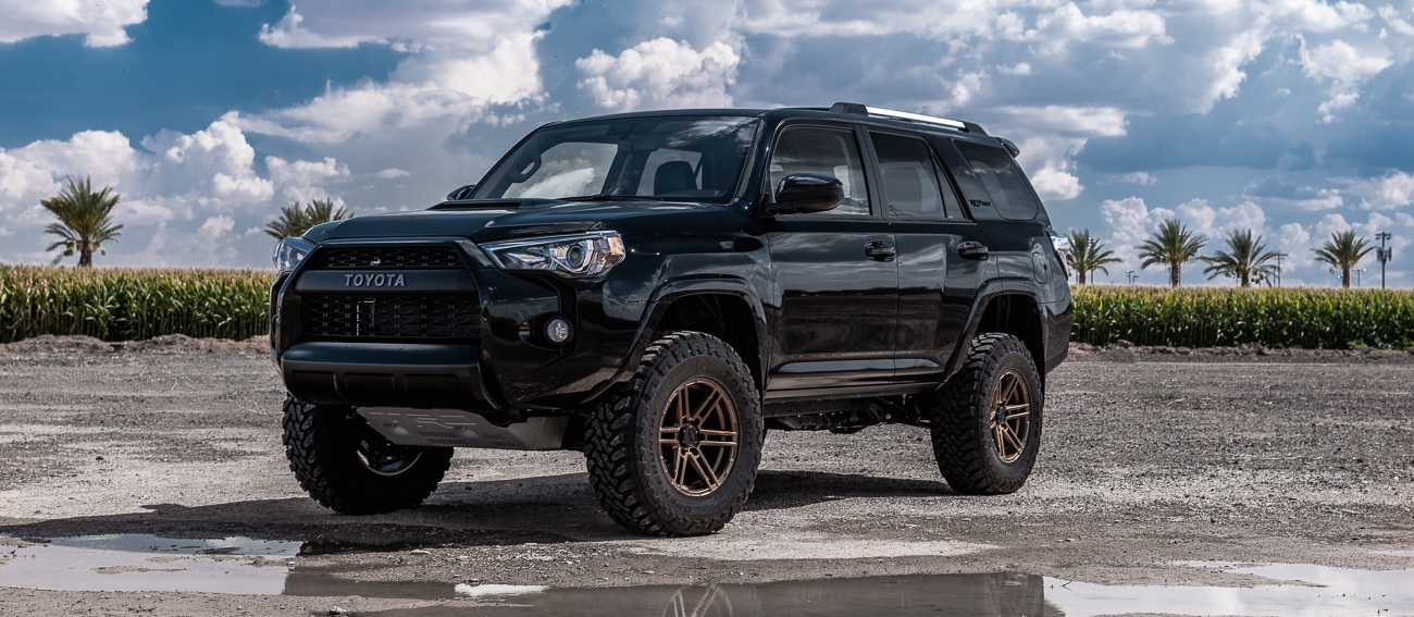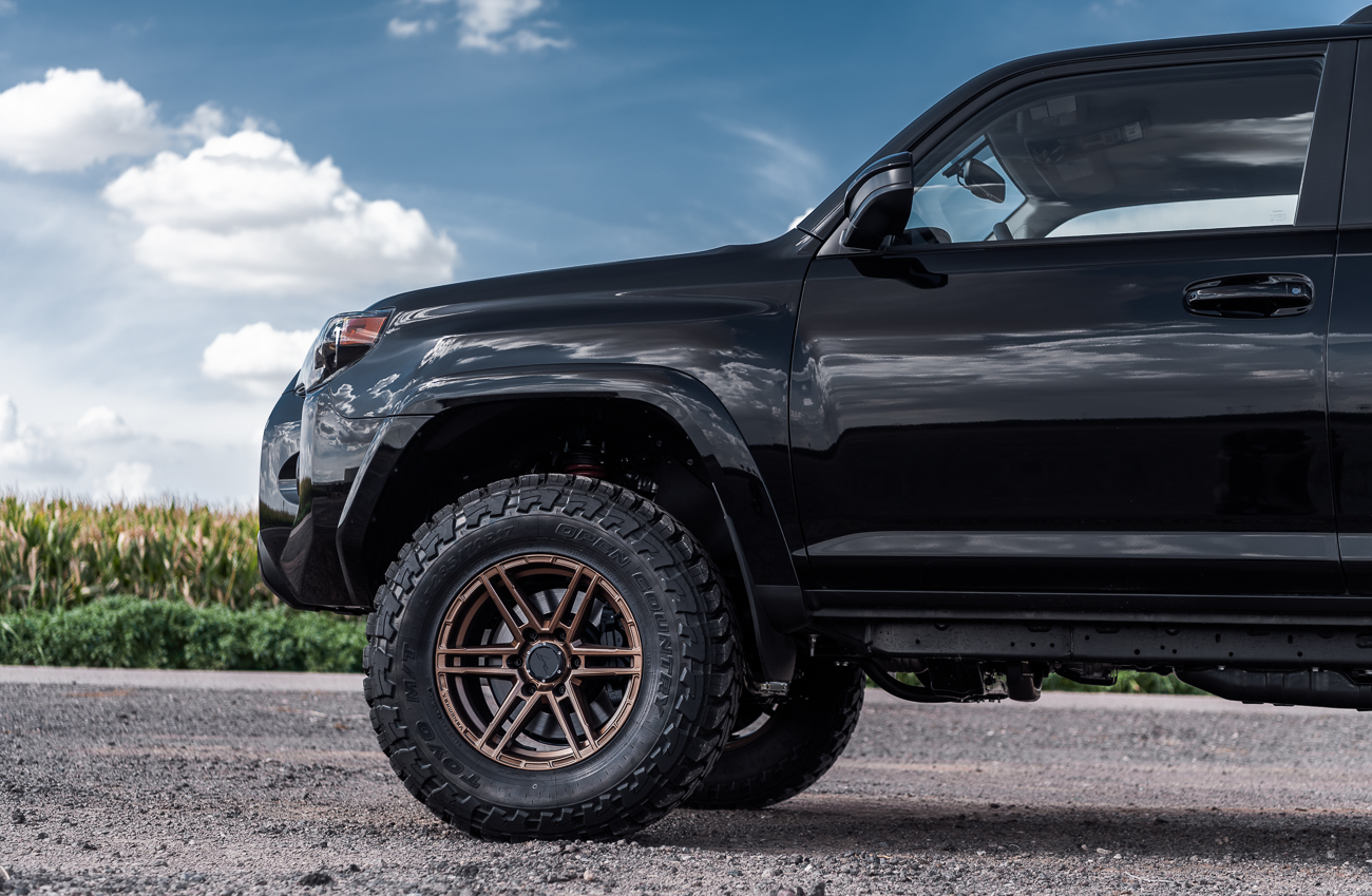 Not too long ago, Vorsteiner decided they wanted to take on the off-road market. They’re one of the biggest names when it comes to aftermarket wheels for sports cars and luxury cars, so it made sense to try to tackle the off-road market. Their first wheel, VR-601, has been massively successful for Ford Raptor and F150 owners. We’ve already written a full article covering the new VR602 in depth which you can read here. Since we’re a large dealer for Vorsteiner, we get early access to a lot of their products. In this case, we received one of the first production sets of the VR602 in Highland Bronze. The set was destined for @bandit_pro_t4r’s Toyota 4Runner.