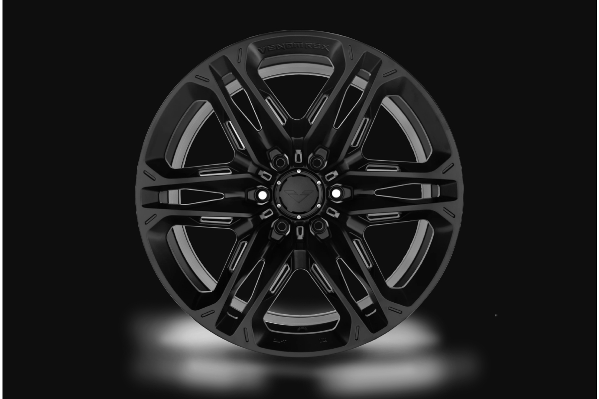 The VENOMREX engineers take pride in having utilized specific design elements to produce one of the lightest 20-inch Flow Forged wheels available on the market today. Being as lightweight as it is, the VR-604 also reduces unsprung weight to improve your truck’s performance and overall driving experience. Apart from its functionality and durability, the VR-604 boasts devilishly good looks. It spotlights six open-mag style spokes which feature a tapered angular design to give your truck an even more aggressive and sportier appearance. Shown in Mystic Black, the 604 will be available in several colors and sizes.