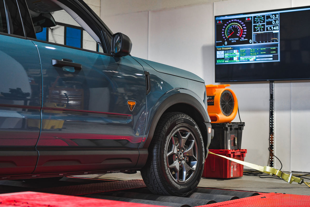 Last month, we introduced you to our latest project car: the all-new 2021 Ford Bronco Sport Badlands Edition. In our initial video, we gave you an up-close look at the brand new SUV as we took it out on the streets for a quick little test drive and then hooked it up to our in-house AWD Mustang Dyno to find out just how much power the turbocharged 2.0L EcoBoost engine really delivers. The stock numbers came out to 250 horsepower and 275 pound-feet of torque. Of course, you all knew that we weren’t just going to leave those numbers be. And this engine provides enough room to do just that and also gain some better drivability in all modes as well.