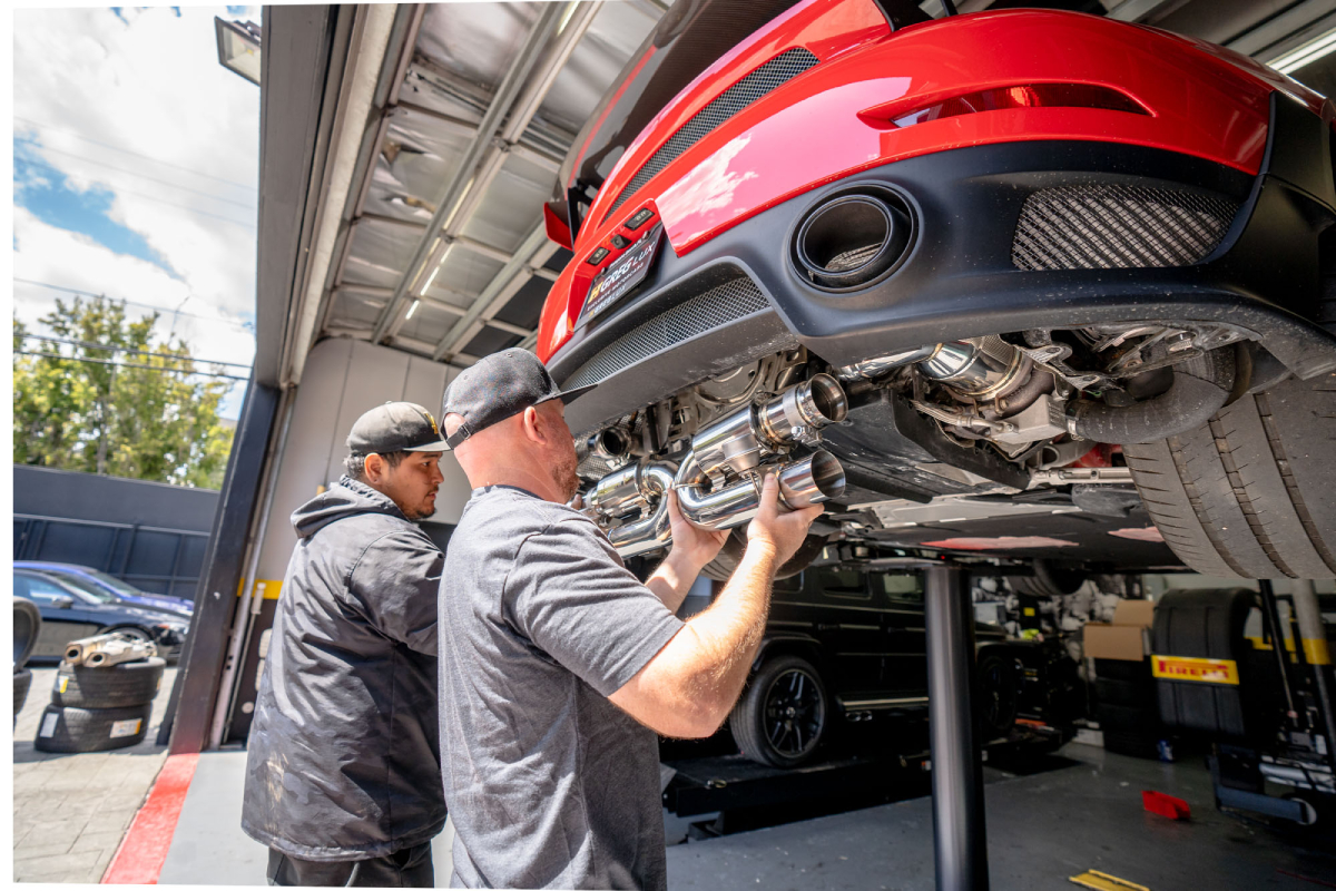 The meeting spot was at Pirelli P Zero World in Santa Monica, which is owned by Claus Ettensberger of CEC Wheels. There, we gave Fabio a closer look at the parts we were going to install on his ride before putting it on the lift. The star of the show was the world-renowned FI Exhaust turbo-back Valvetronic system that works with the factory valves and delivers a remarkable soundtrack without any backpressure. And when enhancing performance, it’s always a good idea to flash the ECU for the ultimate performance benefits; so we went with the coveted VR Tuned package to get the most out of Fabio’s GT2RS and really push out some serious power figures. But we won’t spoil it all for you. Check out the full video below and see it all happen up-close before we take the GT2RS out on the road to truly let it shine – and roar.
