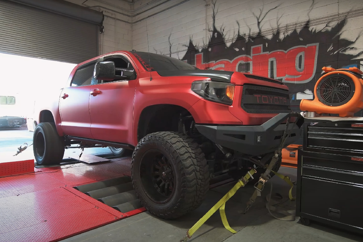 You may recall that the Vivid Racing team installed the new Magnuson TVS1900 Supercharger System on a customer’s Toyota Tundra. The full bolt-on supercharger kit increased the 5.7L V8 truck’s power to a serious 550 horsepower and 550 pound-feet of torque at the crank. In our latest video, we took a supercharged 2016 Toyota Tundra beast, dyno tested it, and installed 38-inch tires on it to demonstrate just how beefy tires can affect the performance of your ride. Before we delve deeper into the dyno process and the results we discovered, take a look at the clip below to see it firsthand.