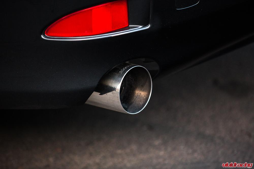 This Lexus IS350 was treated to all of this with a new set of Gram Lights 57xtreme wheels.  The 18×9.5 +22 and 18×10.5 +40 fitment is aggressive for this vehicle. But it works with the charcoal gray paint and winning blue wheels.  Using the stock tires, there is just enough stretch for it to make sense on a daily driver.  The wheels are locked in place with a set of Agency Power tuner lug nuts.  The car sitting lower on Tein S-Tech Springs now sounds a ton better thanks to a Meisterschaft exhaust.  With a new Seibon OEM carbon fiber hood and carbon fiber front lip, this IS350 has made a significant change!