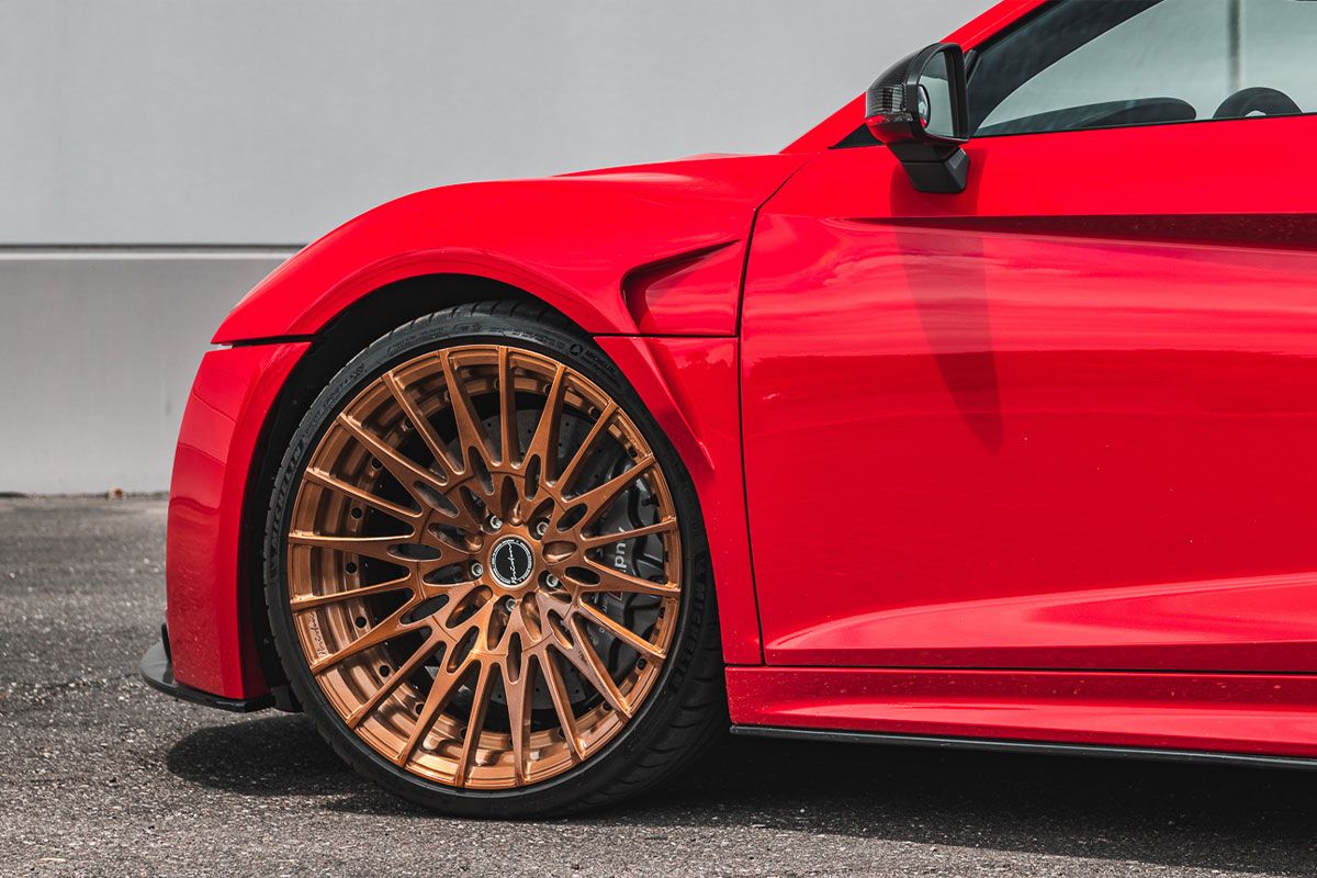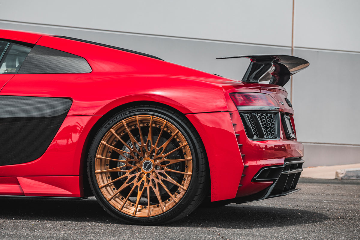 It took some time, but once the widebody kit was installed our R8 looked amazing. Well, it didn’t look that great until we installed the Brixton HS1 Duo wheels, which helped fill in the new widened body panels and give the R8 a very exotic appearance.