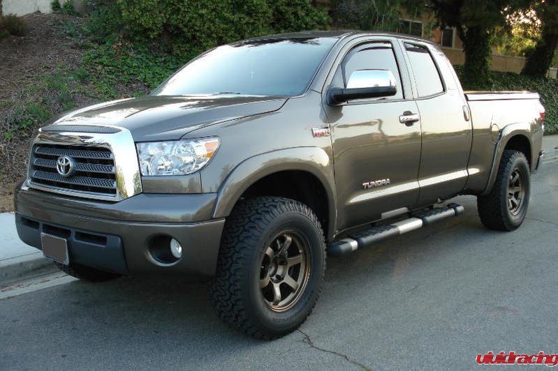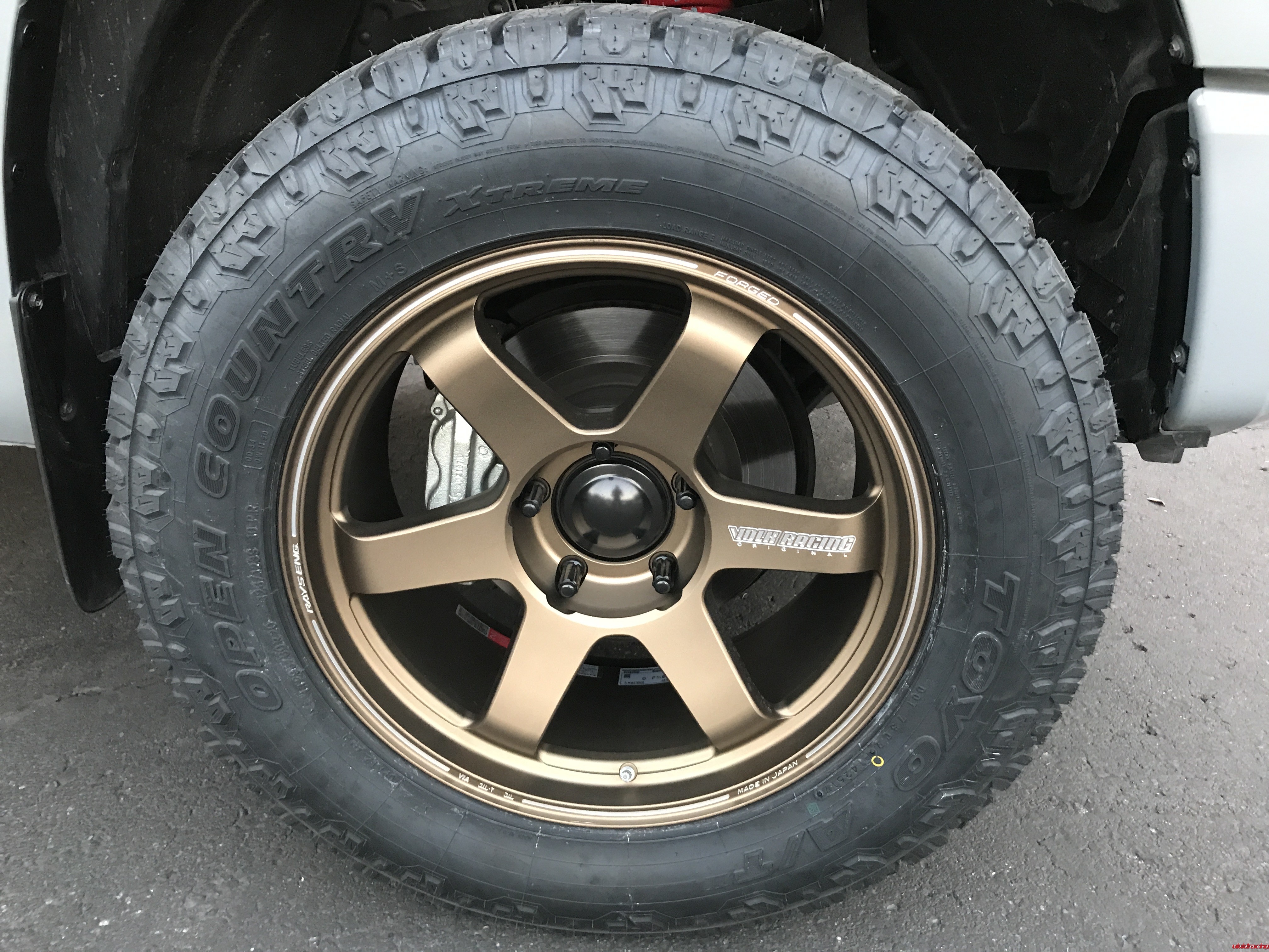 Volk Racing Wheels from Japan are one of the most popular wheels available for Japanese vehicles. In the past couple of years they have gained huge traction in the European market with wheels for cars like BMW, Porsche, Ferrari, and Audi/VW. We have personally used TE37’s on our Project Cars going back to 2001 on our first Subaru WRX. Recently, Volk Racing has produced a large PCD version of the TE37 to fit Toyota off-road vehicles like the Tacoma, Tundra, FJCruiser, 4Runner. Having recently fitted a set of 20×9 5×150 0mm offset bronze TE37 on our Project Tundra, we wanted to share more of these wheels with Toyota owners. A fully forged wheel is extremely lightweight and strong. One of the biggest benefits of a forged wheel is weight savings. The most popular 1 piece wheels on the market are Method and Fuel. These are great wheels and a bargain at around $800-$1000 for a set of 4. Typical 18×9 wheels weigh about 30.60lbs per wheel where the 20×9 weighs 37.00lbs per wheel. Comparing to the Volk TE37, a set of 4 of these wheels ranges between $3000-$4000 depending on if it is 18″ or 20″. The Volk Racing TE37 18×9 wheel weighs 19lbs and the 20×9.5 weighs 25.5lbs. Stock TRD 18″ wheels weigh about 30lbs each. Where the limited wheels weigh about 37lbs each.