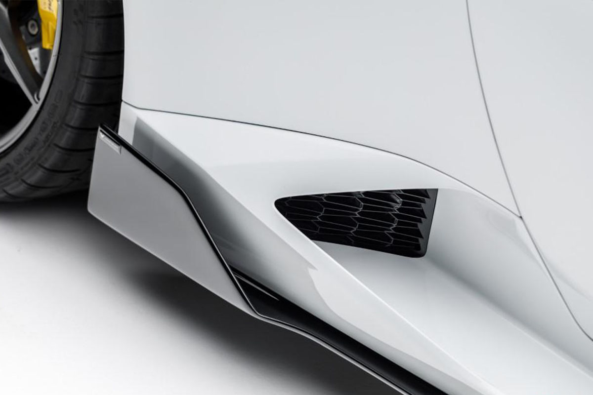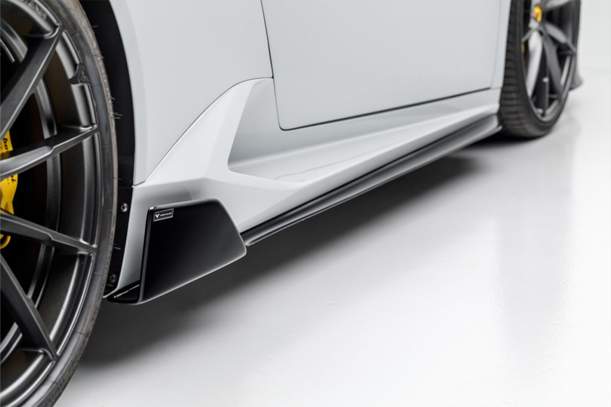 Vorsteiner also released the air intake bezels to complete the front end. To complement the rest of the Mondiale program, the aero side blades blend aggression with the factory body. A fin at the rear of the blade offers a smooth transition with the factory body lines and accentuates the aggression given off by the whole kit.
