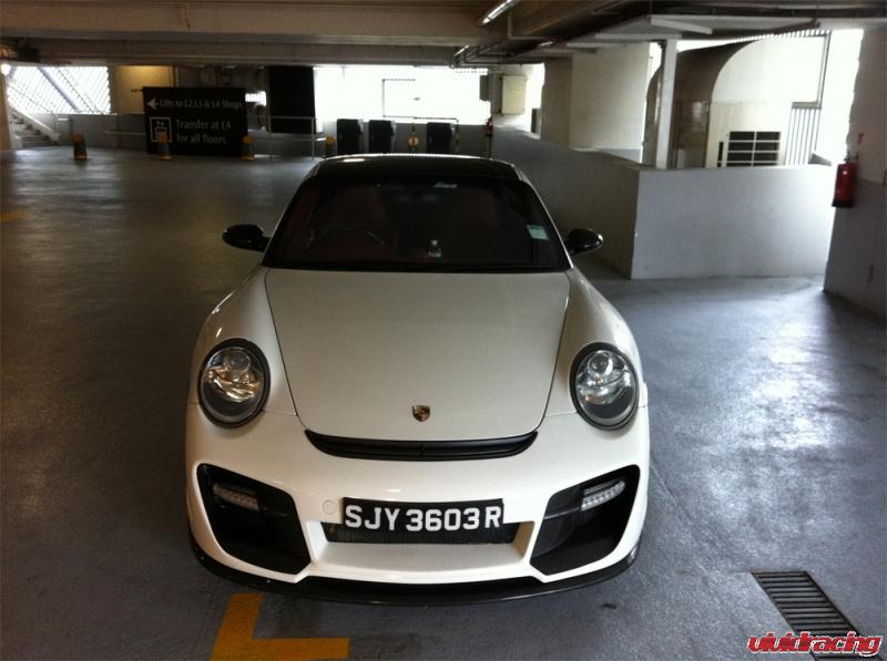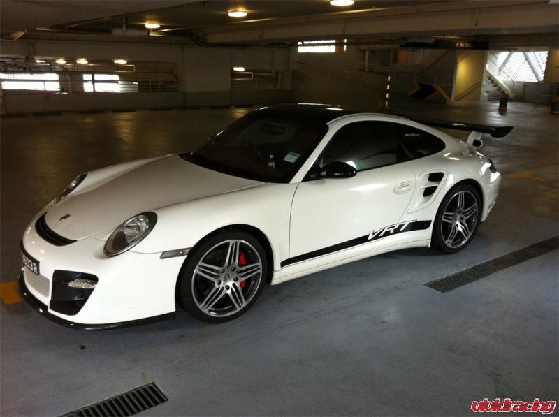 Check out these pictures from our customer Derrick in Singapore of his Porsche 997 Turbo. Derrick is using the Vorsteiner VRT front bumper and rear spoiler on his white Porsche 911. The front bumper made from Vorsteiners DVWP process includes a carbon fiber wrap around lip spoiler and carbon fiber radiator ducts. The rear wing is a complete decklid replacement with a carbon fiber blade and side air intakes. The decklid also has carbon fiber top air inlets under the wing blade to give the stock air intake maximum cooling. Next up on Derricks list is the Vorsteiner rear bumper and some wheels!