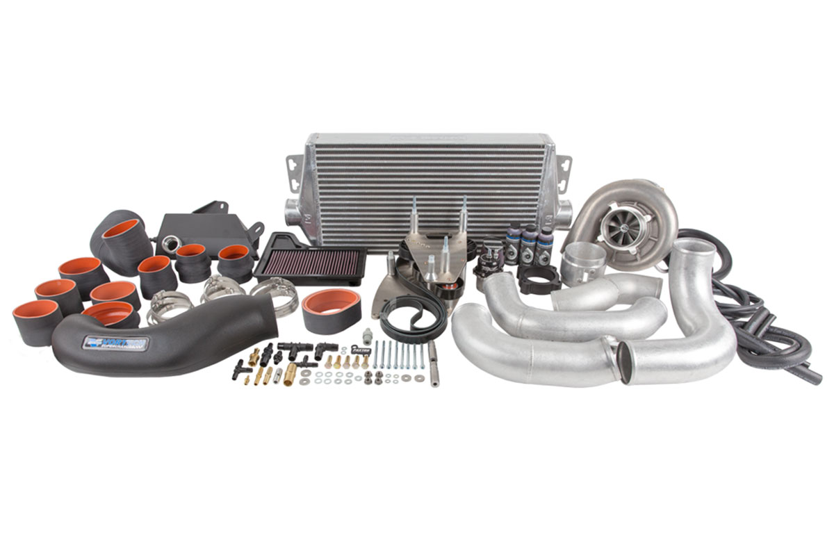 Included with the kit is an air to air charge cooler which will allow charge air temperature to stay consistent, resulting in less heat soak and the possibility of more horsepower depending on your tune. Also included is a 98mm MAF housing with is configured for a “blow-through” setup. The included air inlet duct will work perfectly with the stock air box and it will also work with select aftermarket air intakes. The supercharger itself will be available in Satin, Polished, or Black, with the Satin kit coming in around $200 cheaper than the others.