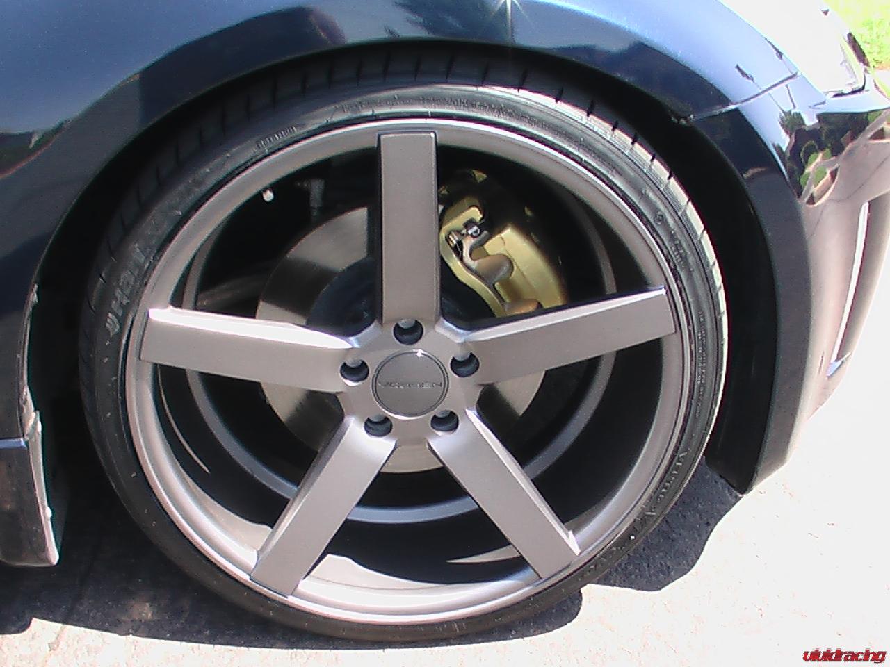 The Nissan 350Z was the perfect car for Nissan to launch and bring it back into the sports car game. The 2 seater coupe soon aged and became a perfect car for track racing, drifting, and shows. Being that the Z33 chassis had such a great wheel fitment, 19 and 20 inch wheels were the way to go. This particular customer went for a set of Vossen VVSCV3 wheels from Performance Specialist Ahmed. The monoblock 1 piece wheel was built in a 20×9.0 and 20×10.5 with a 20mm offset up front and a 25mm in the rear to give it that perfect stance. Wrapping the graphite color wheels are Hankook Ventus V12 tires in a 245/30/20 and a 275/30/20. Enjoy the pics and if you dig this setup, comment and share!