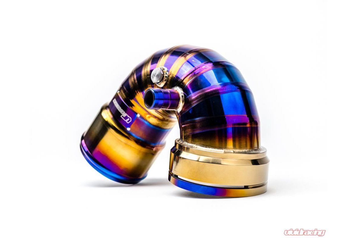 The hot side includes two titanium pipes that are a direct bolt-on replacement piece for the factory ones. These new pipes are guaranteed to help deliver charge air more efficiently to your car’s engine. The increased volume allows for more boost without the possibility of it cracking or popping off. The exact fitment of the replacement hoses is done using gorgeous pipe cuts from precise 3D scanning of the BMW and Toyota’s factory components.