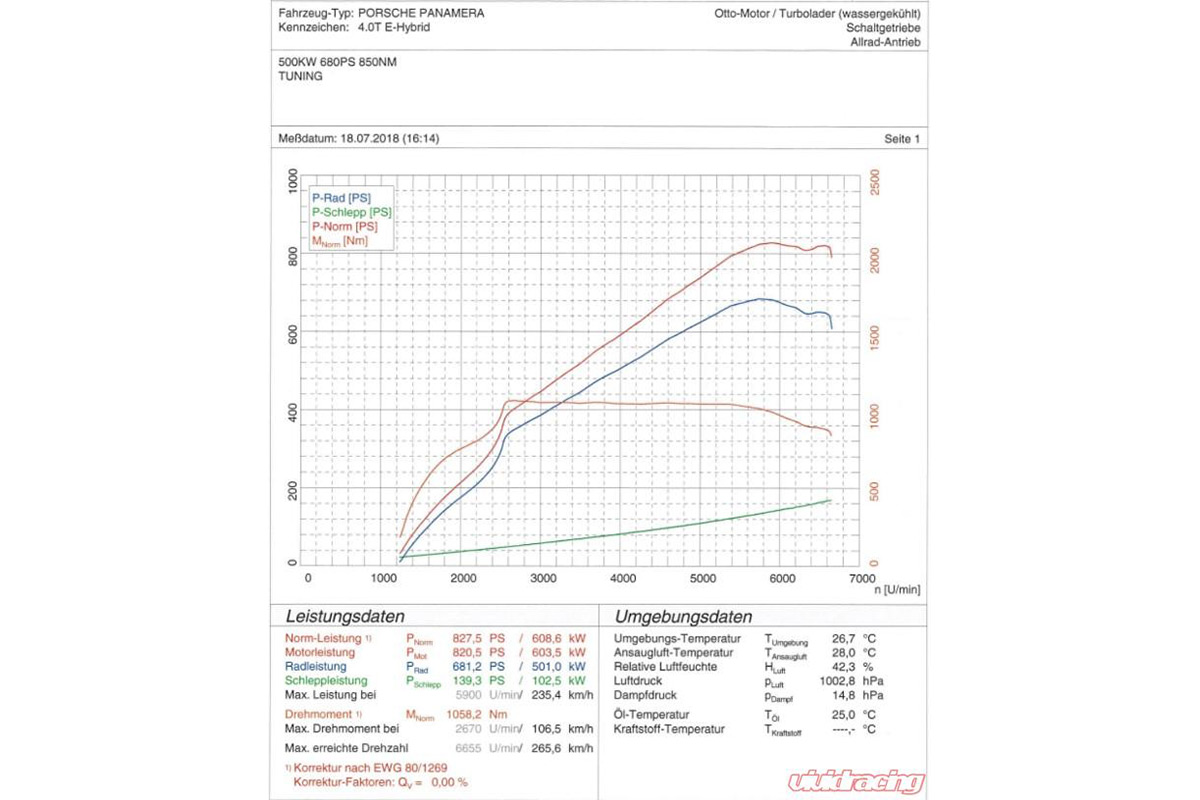Our new tuning box takes many of the inputs the ECU relies on and slightly modifies the signal of the sensor before sending it to the ECU. This effectively “tricks” the ECU into safely making more power. One of the significant benefits of this type of setup is having the ability to remove it without a trace, meaning you won’t have to worry about your warranty being void. As we found, Porsche left a HUGE amount of performance on the table with the 971 Turbo. With our tuning box installed, you can expect horsepower gains of around 138 and around 200 ft-lbs of torque, making your Panamera output around 680 horsepower and 770 ft-lbs of torque! It should be noted, this tuning box works with Panamera Turbo and Turbo S E-Hybrid, however, the tune does not change anything with the electric motors of the E-Hybrid model.